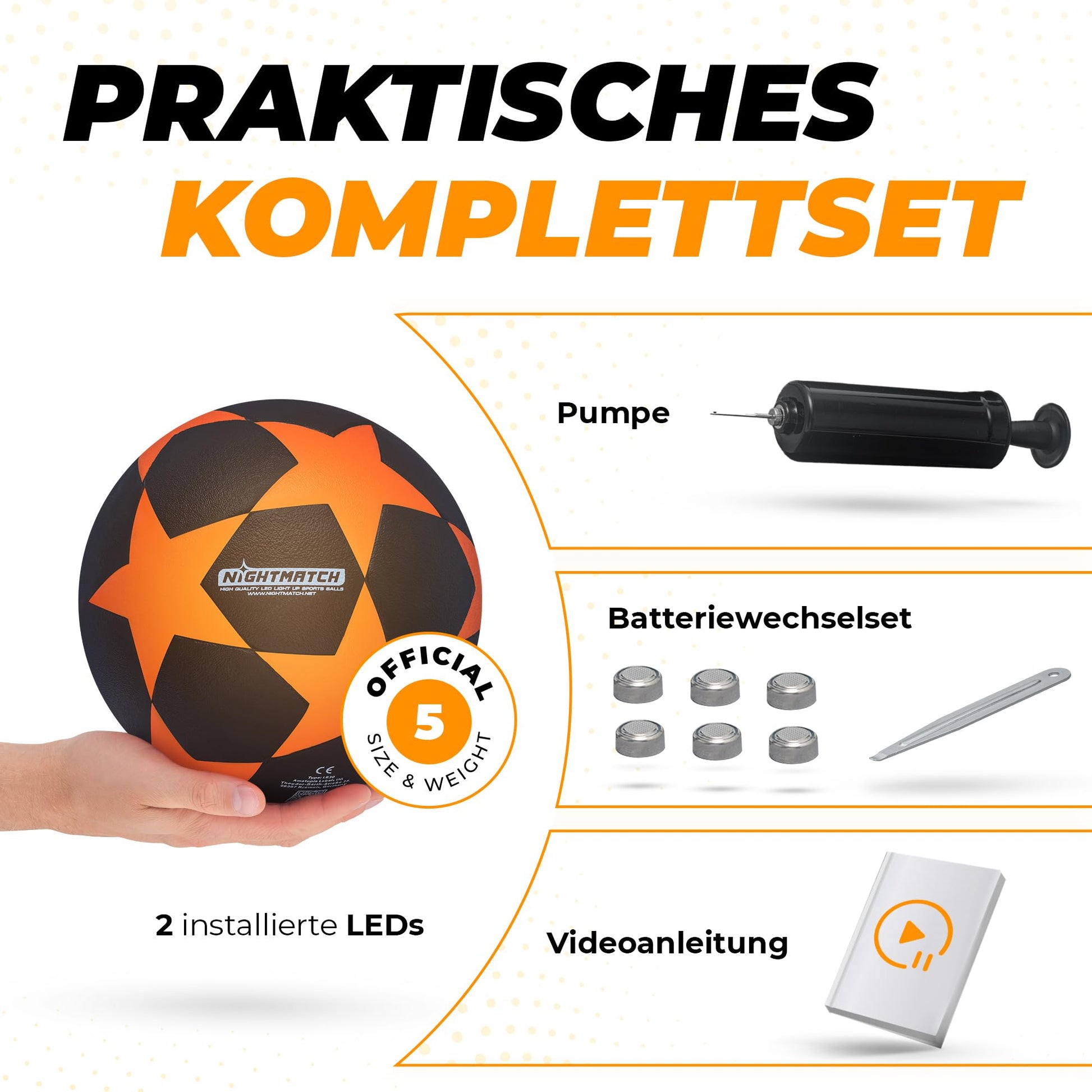 NIGHTMATCH Official Size 5 Waterproof LED Light-Up Soccer Ball - Glow in the Dark Soccer Ball for Night Games, Kids, Adults - Complete Set with Pump & Extra Batteries
