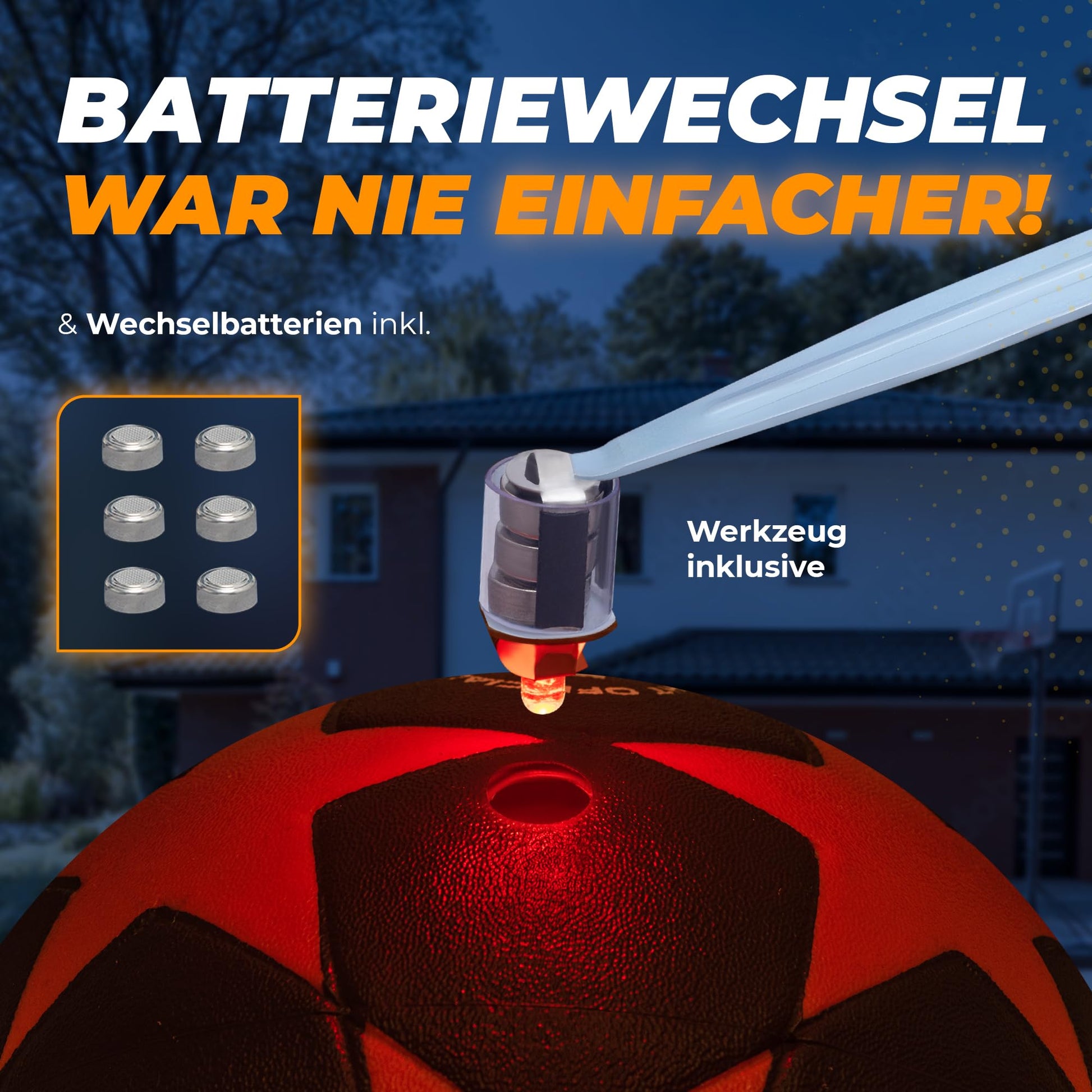 READY, SET, PLAY + EXTRAS INCLUDED: Simply unpack, inflate, and play with the glow-in-the-dark ball. Ball pump, 6 batteries, and 12 spare batteries included for non-stop fun.