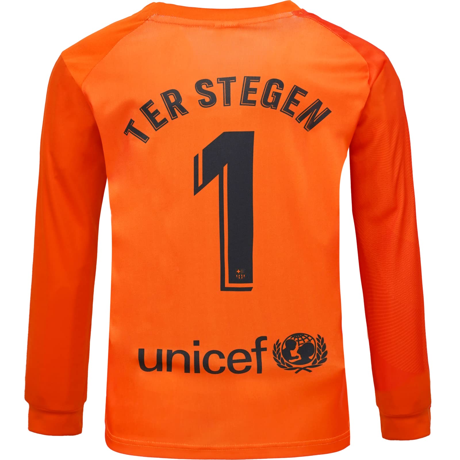 NIHMEX Barcelona TER Stegen Kids Goalkeeper Jersey Soccer #1, New Season, Shorts Socks Goalkeeper Kit (Orange (Long Sleeve), 26)