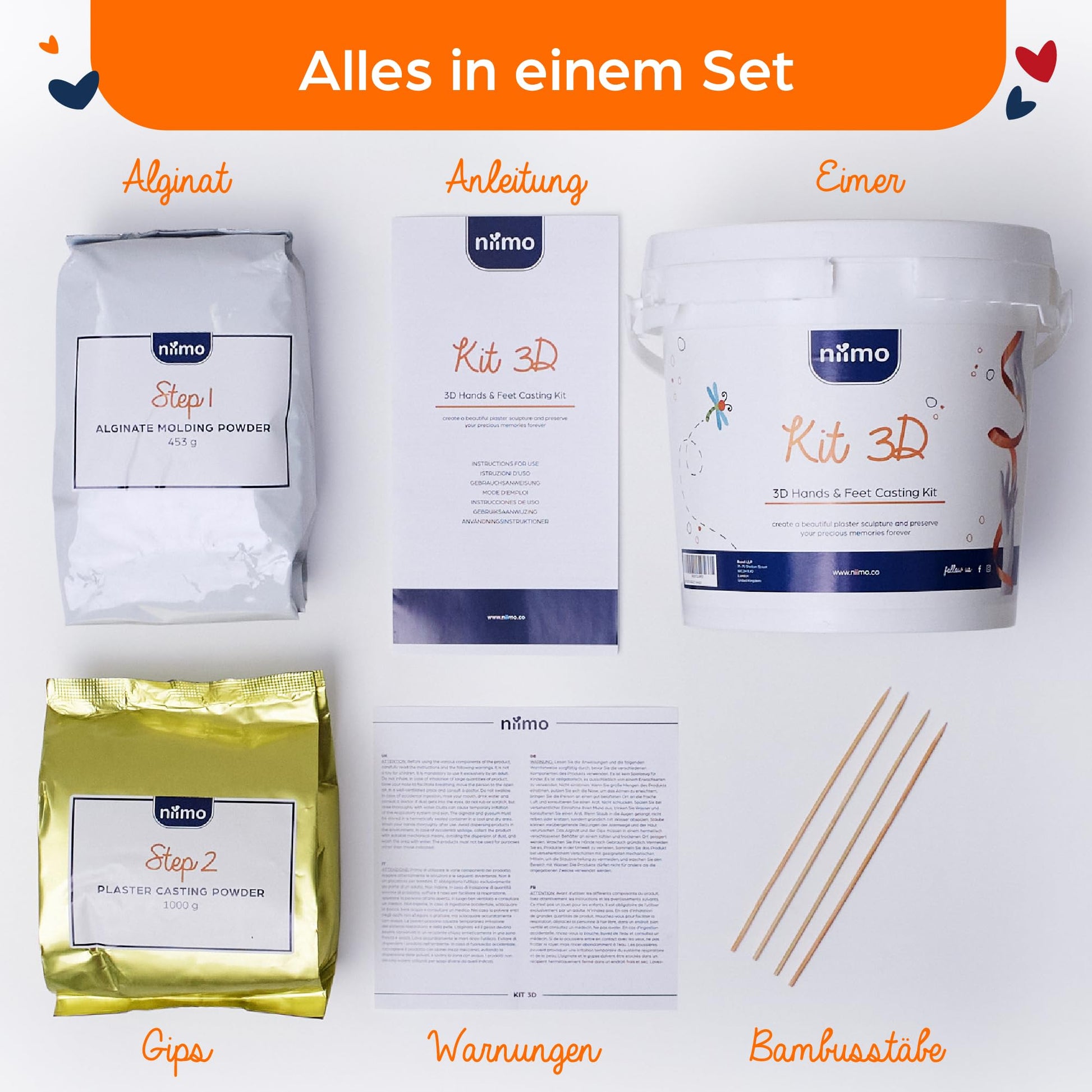 ["HELLO WORLD MOMENT FOR HIM BEST: The most beautiful moments in life are often the most fleeting. With our couples handprint set, precious moments can be preserved forever and unique gifts for men and women created.","DATE COMPLETED: The handprint set includes 1 lb of Alginat molding material (with color indicator), 2.2 lbs of plaster, 1 mold container, 4 bamboo sticks, 1 instruction manual, and a video tutorial. The partner gift set consists exclusively of non-toxic ingredients.","4 EASY STEPS: Simply mix the Alginat molding material, dip hands together, pour casting powder into the mold and let it dry. Ideal as a birthday gift for women and men, wedding gift, anniversary gift for him and her, and more.","MUST-HAVE ZUM DETAIL: The high-quality plaster mold set captures even the finest details like skin folds, fingernails, and wedding rings - for an absolutely detailed and lifelike unique piece.","PERSONALIZED GIFT AND MEMORIES: Surprise your favorite person with a special keepsake! The handprint set is perfect for wedding gifts for the bride and groom, anniversary gift, engagement gift, or many other special occasions."]