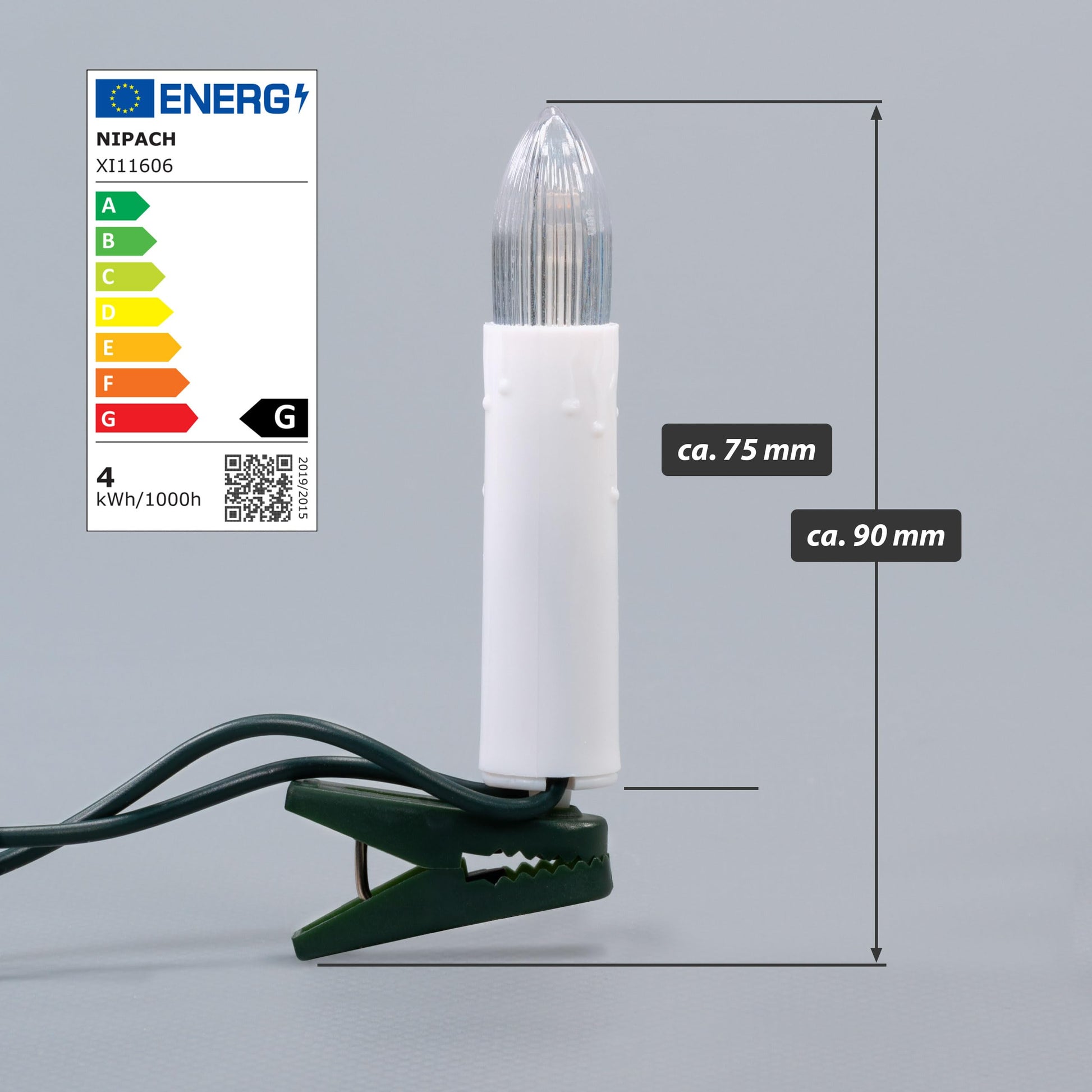 "These tree candles with warm white LEDs will make your Christmas tree shine in the best light and ensure low power consumption. The lighting is held in place on the tree by clips, providing a stable and straight fit. The tree decoration with candle size of 8 cm / 9 cm (with clip) and a green cable is ideal for your Christmas party, but also suitable as decorative ornaments for weddings, birthday parties, parties, and other festivities. Certified protection class IP20 - guarantees your safety. Suitable for indoor use only."