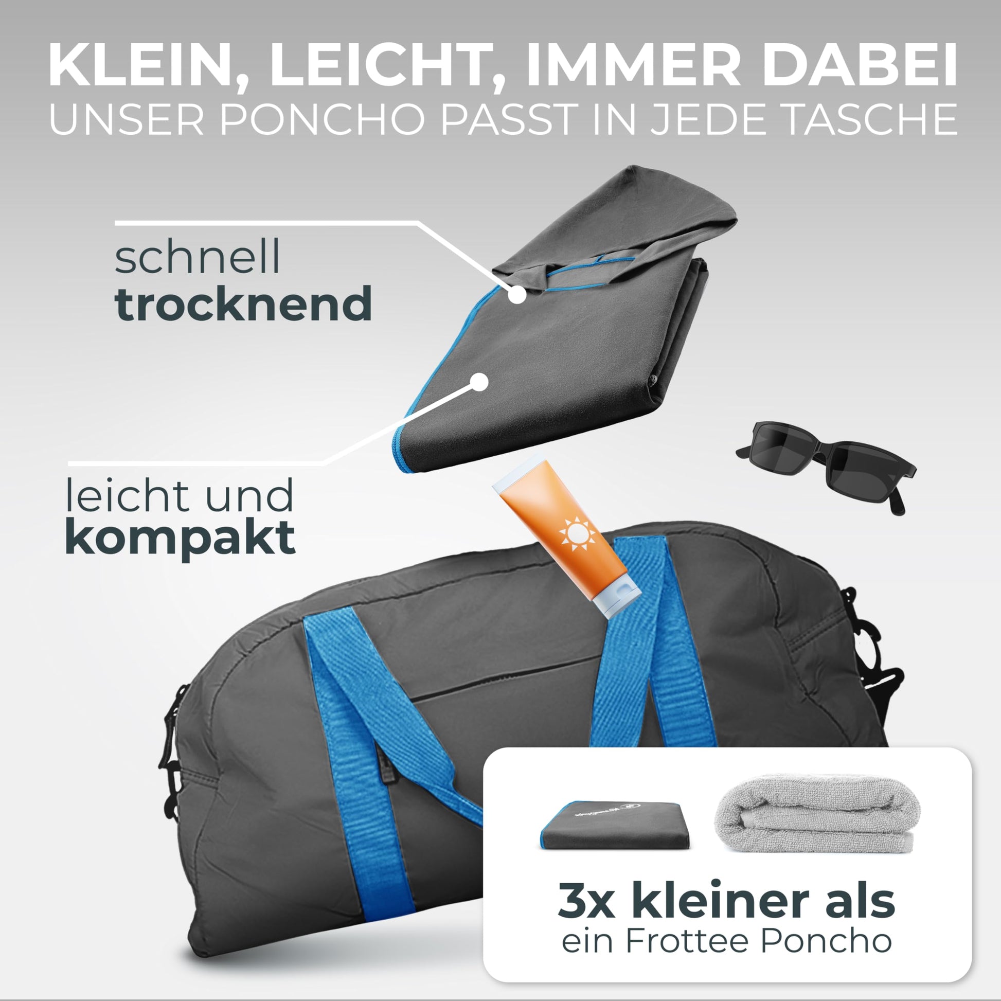 ECO-FRIENDLY - 100% CO2-neutral: We offset the transportation of our microfiber towel ponchos with our partner atmosfair - awarded as the No. 1 compensation quality winner.