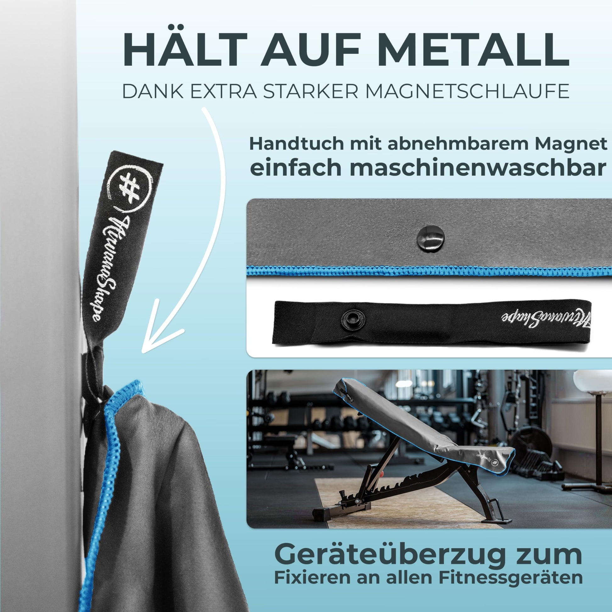 NirvanaShape Fitness Towel | Made of strong microfiber with magnet clip, stylish & functional | Ultra-absorbent & compact | Your perfect gym towel for fitness studio