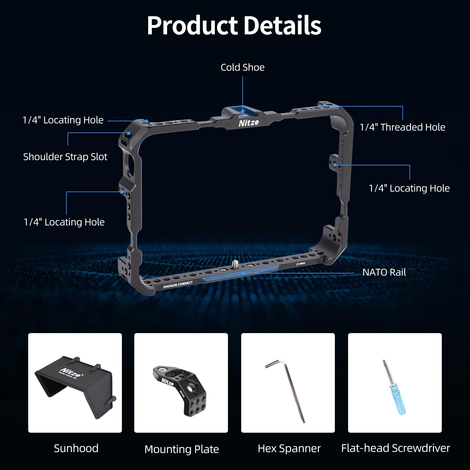Nitze cage for Atomos Shogun Connect/Shogun/Shogun Ultra, monitor cage with mounting plate and sunshade - JT-A03C.