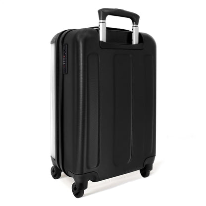 "COMFORTABLE TRANSPORT: The rolling suitcase has 4 wheels, making it quiet and agile, offering pleasant comfort. The telescopic handle is adjustable and sturdy, ensuring a comfortable trip.",