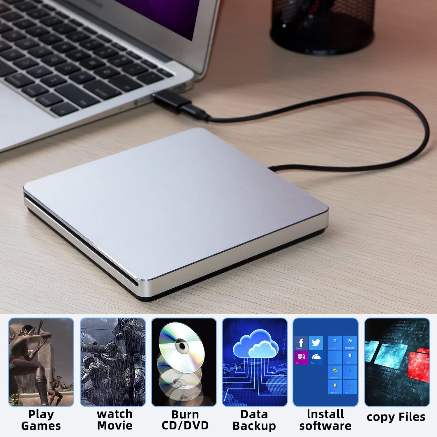 ["Special DVD Drive for MacBook"] NOLYTH This external DVD drive is made of a full aluminum alloy, perfectly matching the material of MacBooks, elegant and slim with the latest USB-C for Mac/MacBook Air Pro. We also provide a USB 3.0 adapter in case some laptops without USB-C need to use this external DVD drive.