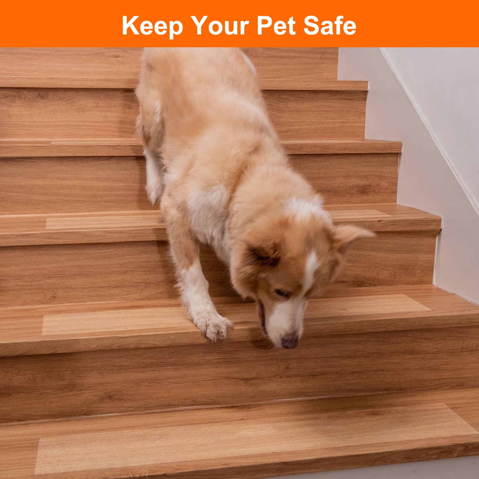 "✔️ Excellent slip resistance - Our staircase mats with special litchi grain surface are transparent, waterproof, and provide maximum safety. This anti-slip tape for steps reliably protects children, seniors, and pets from dangerous slips.