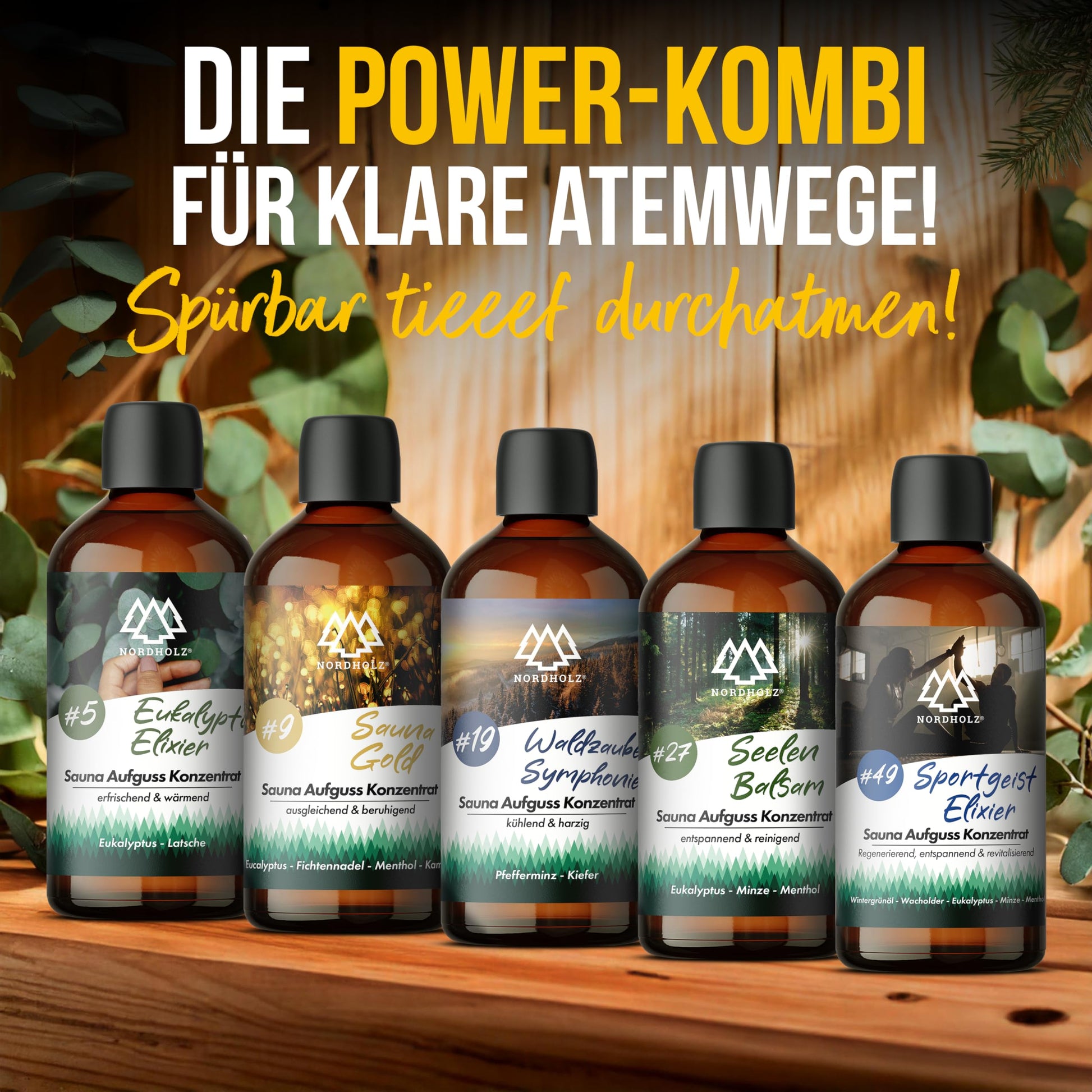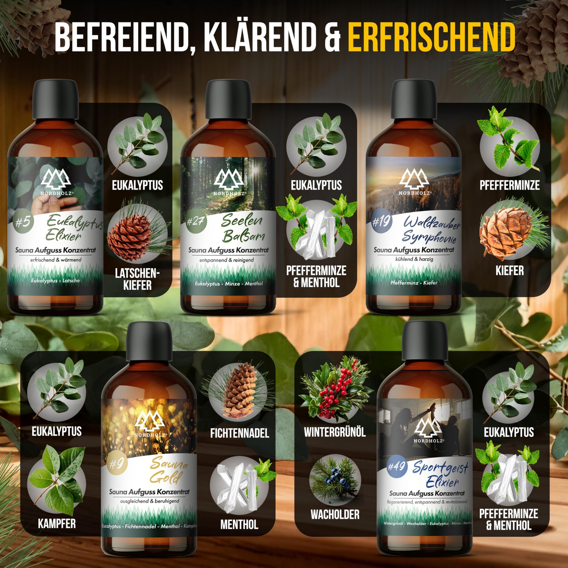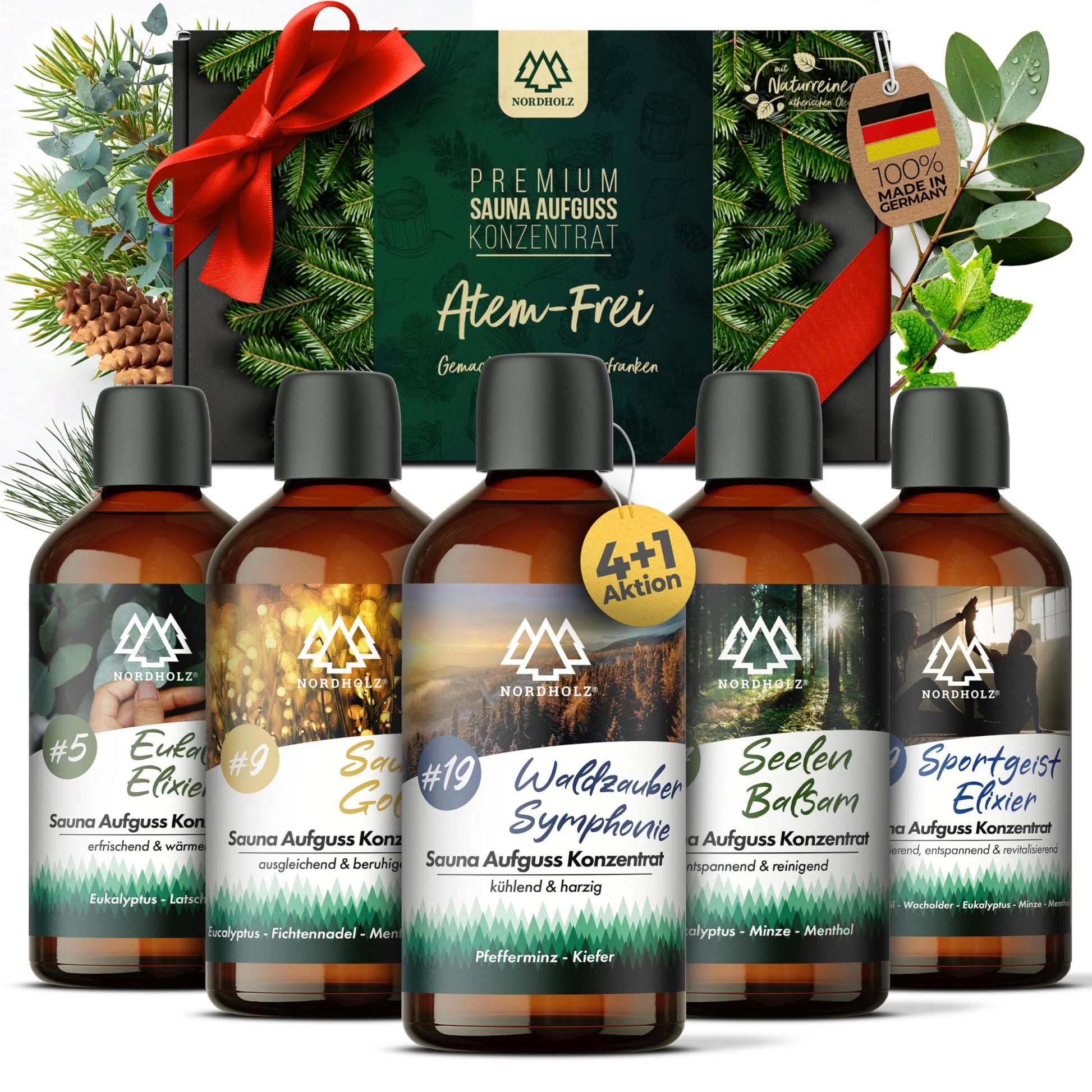 NORDHOLZ® Sauna infusion set [5x100ml Breathe free] special & natural sauna infusion - intense & relaxing scent - sauna accessories