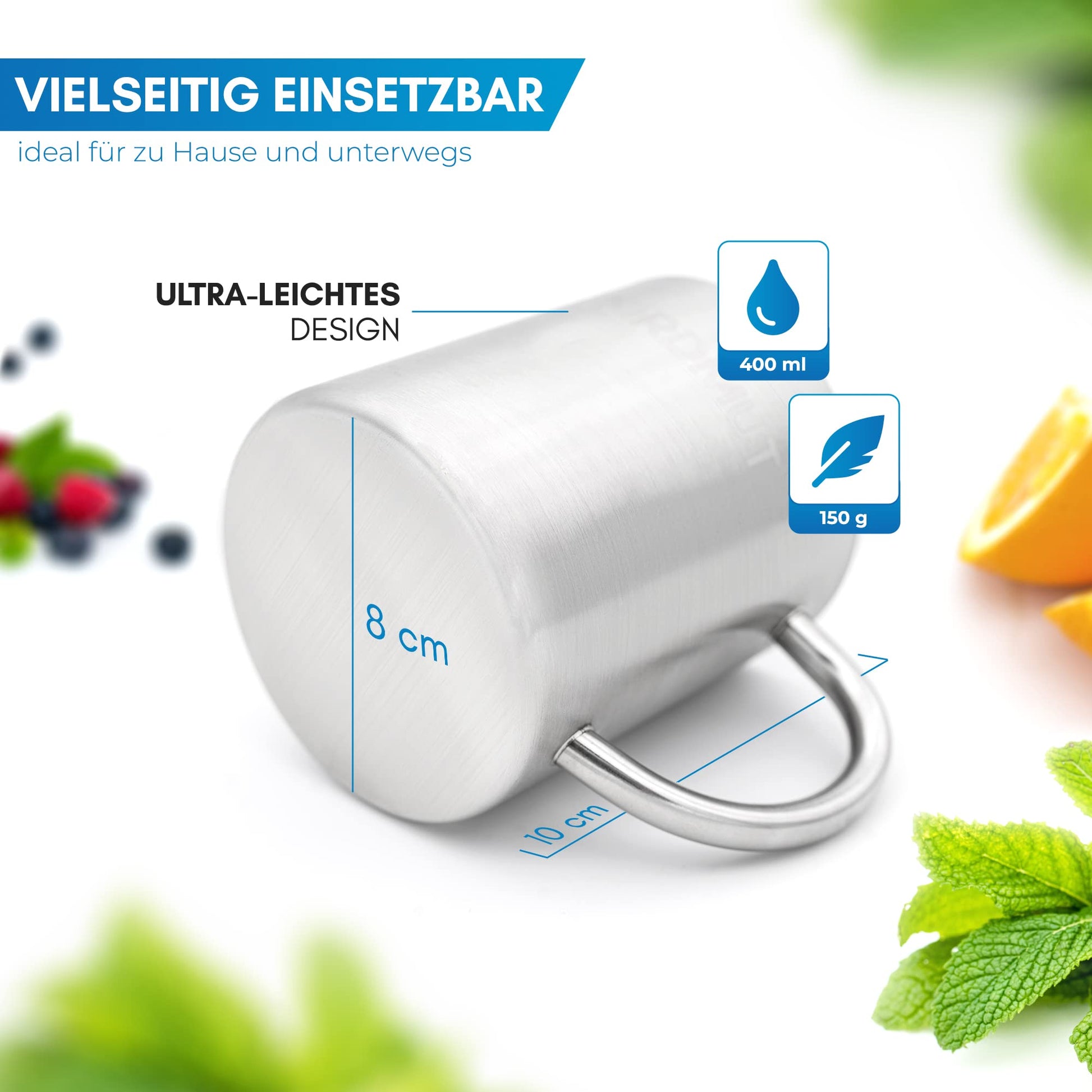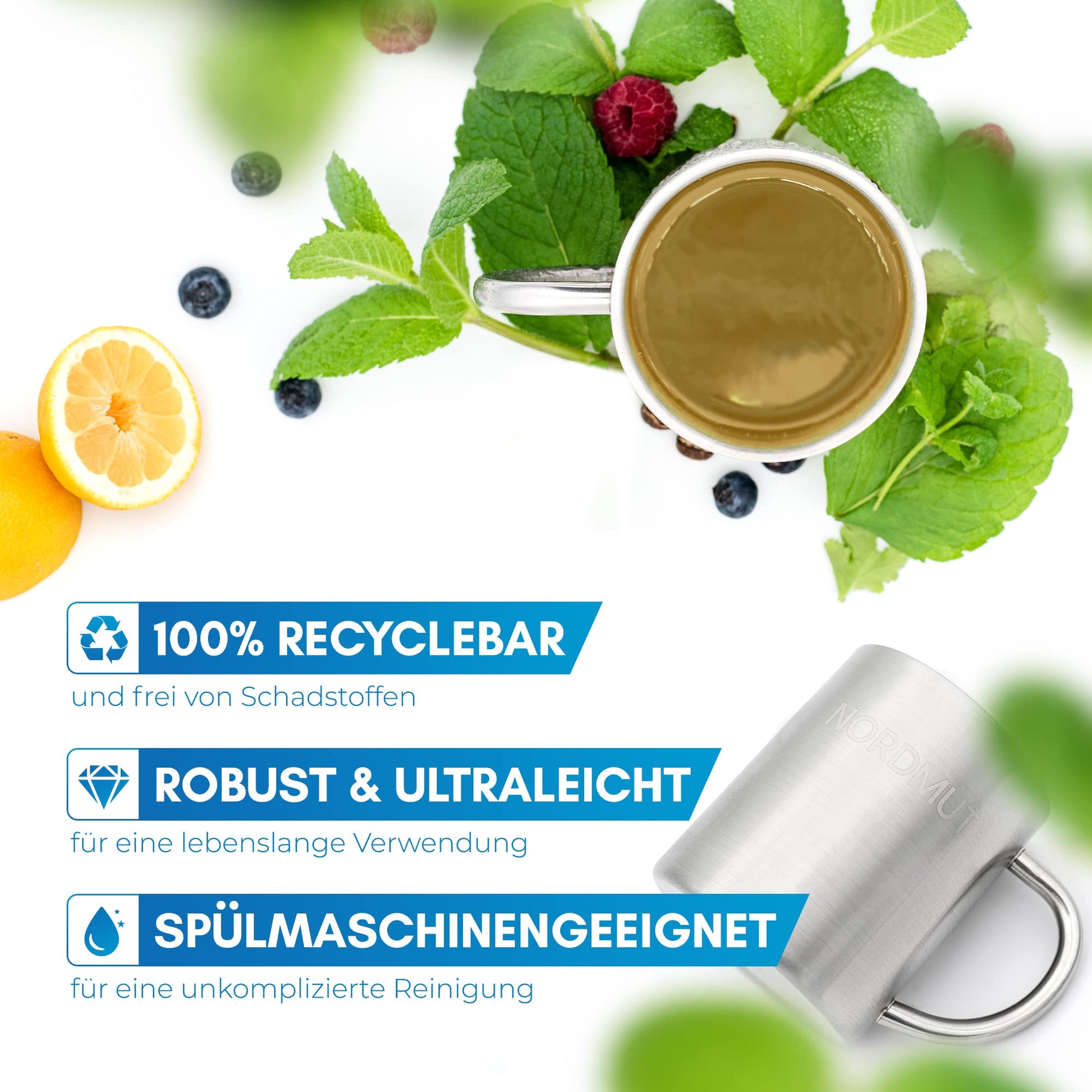 ["🌿 DOUBLE-WALLED INSULATION - Thanks to the double-wall insulation of the stainless steel cups, the drink temperature stays stable for longer, ensuring a premium drinking experience.",