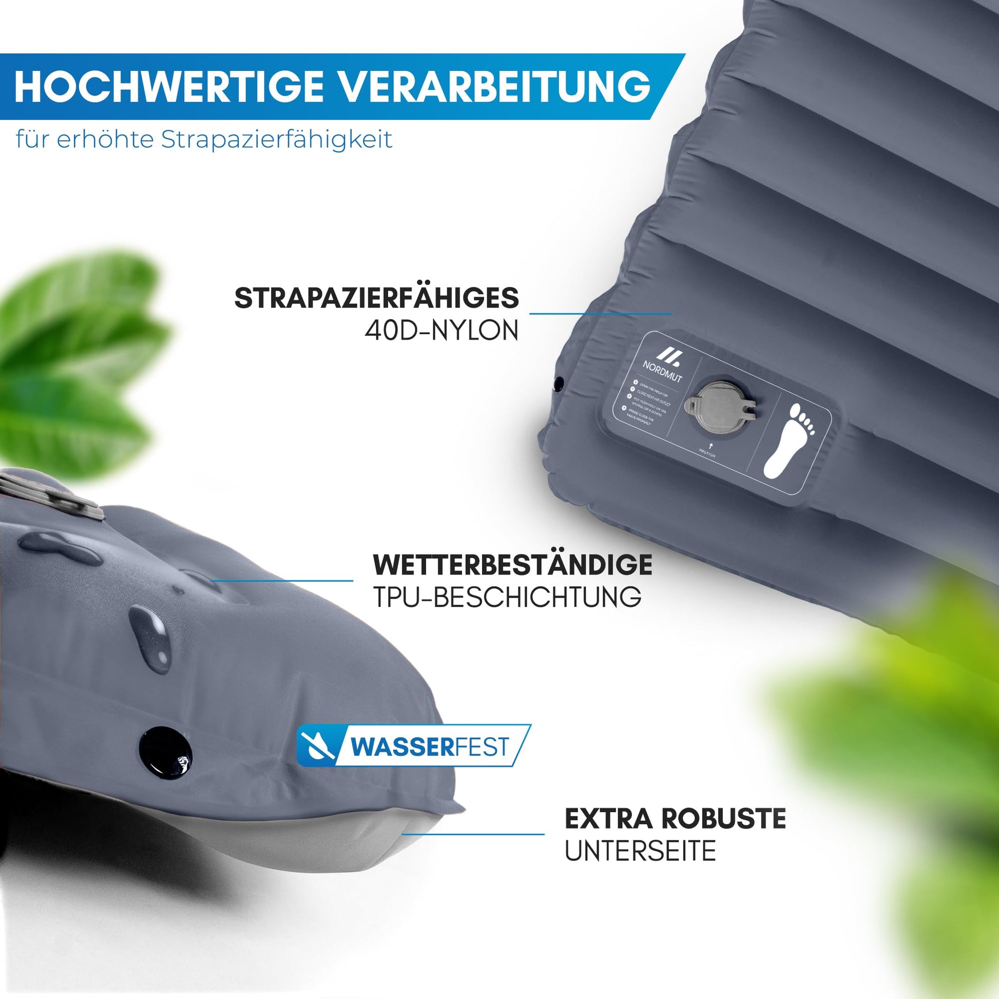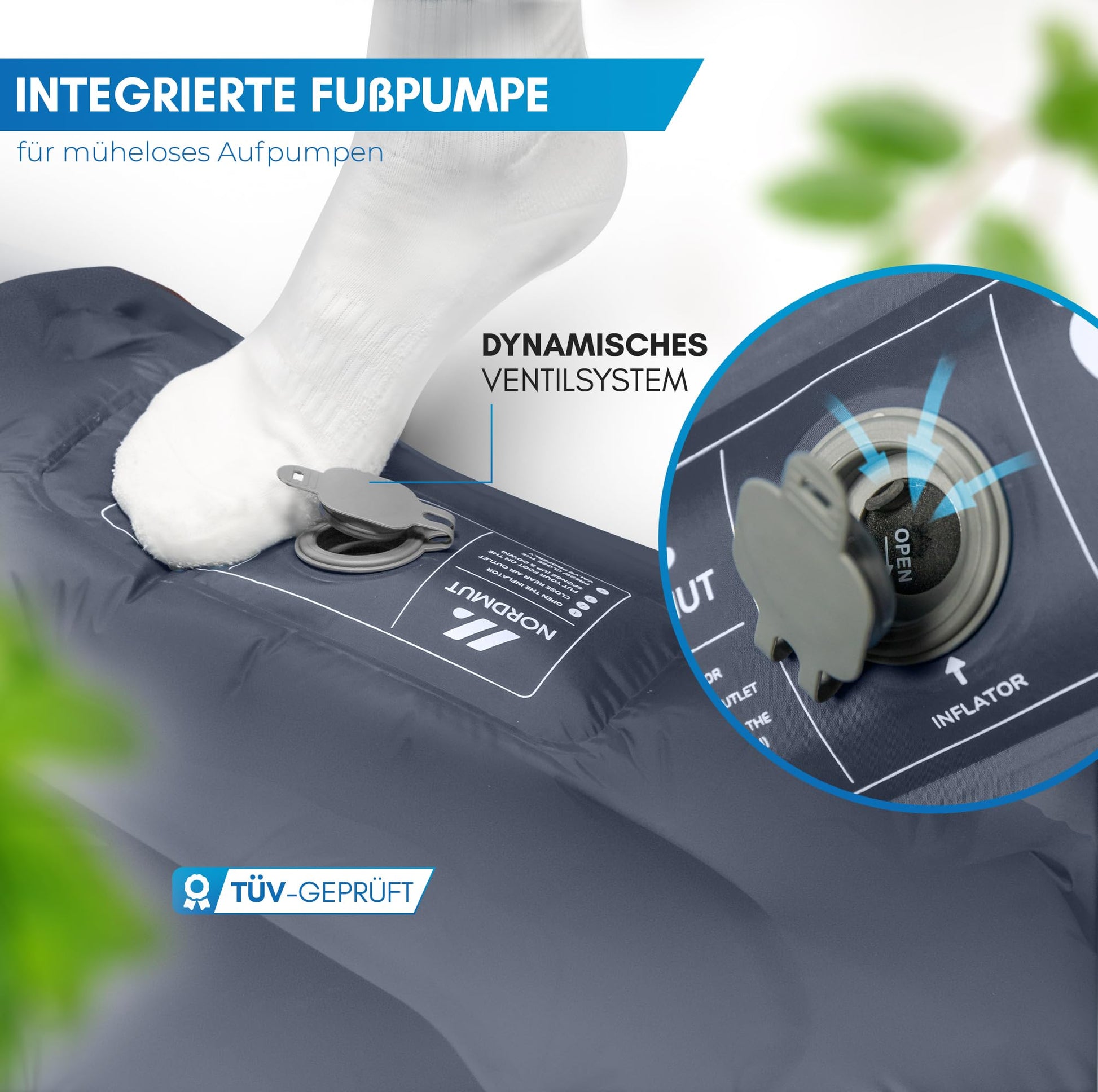 "๐ฟ SELF-INFLATING - Easy & effortless inflation of the self-inflating sleeping pad with the integrated foot pump - ready for your outdoor adventure in just one minute.",