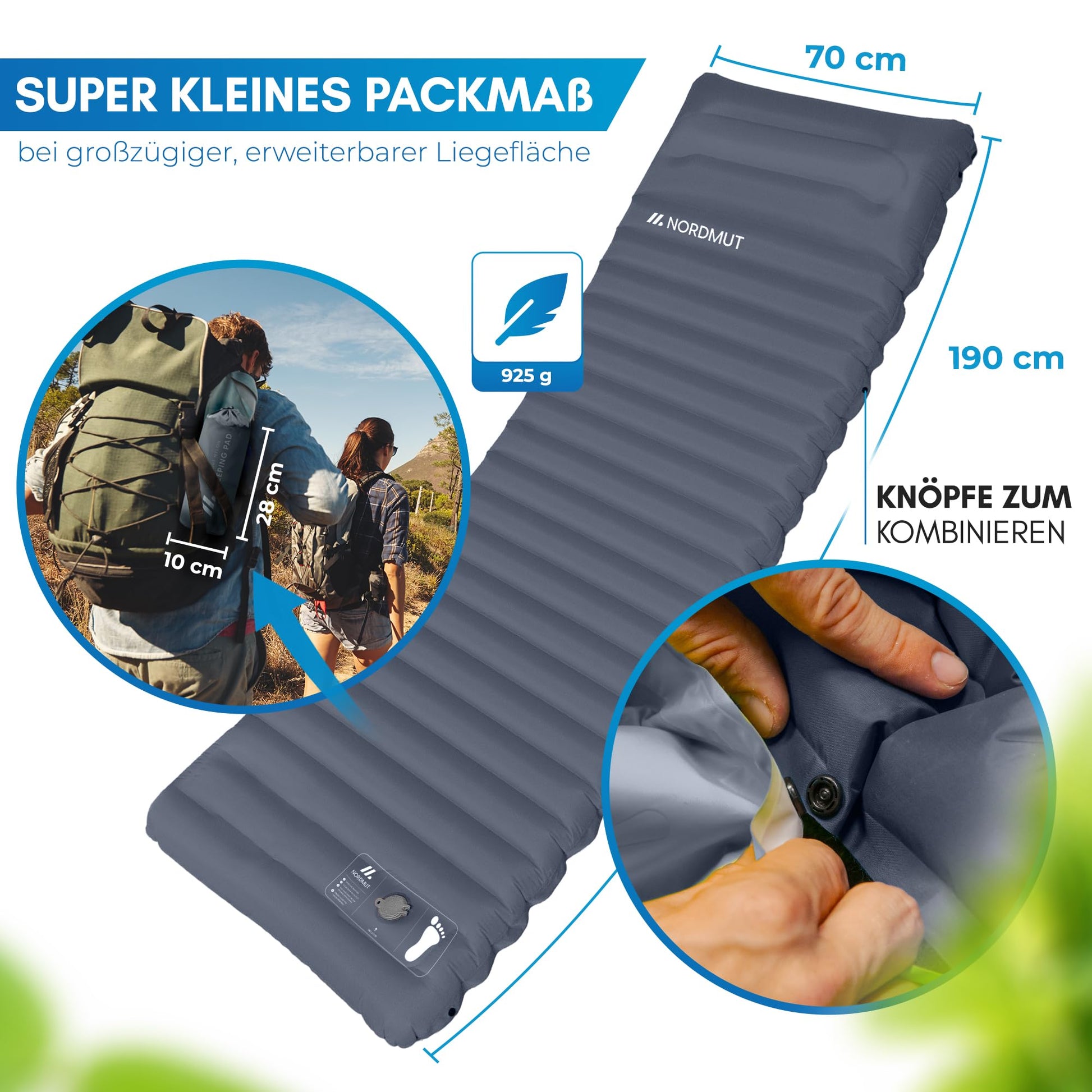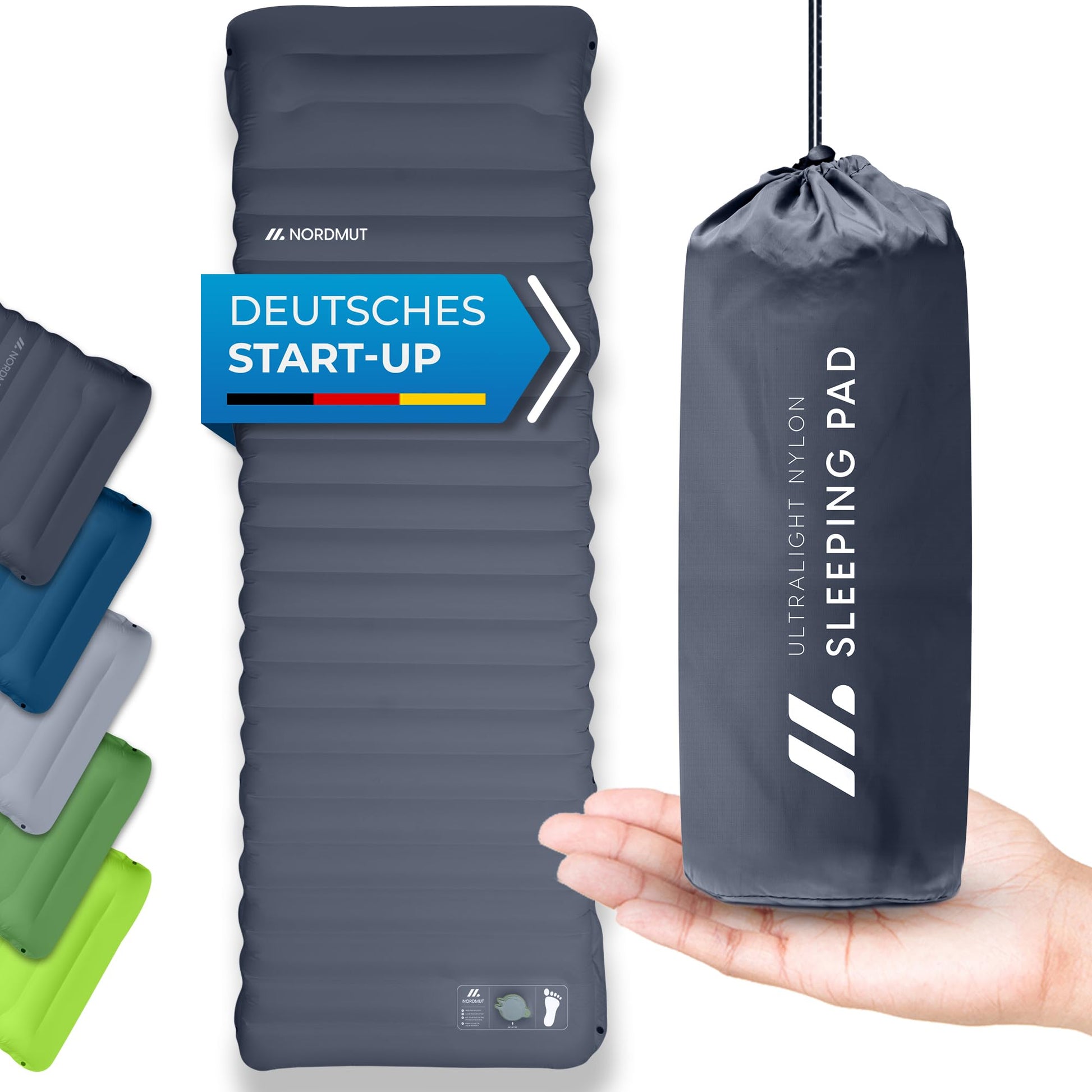 NORDMUT Self-Inflating Sleeping Pad 10cm - Camping Mat with small pack size - Self-Inflating Air Mattress for easy inflation - Camping Mattress Ultra comfortable (Dark Gray)