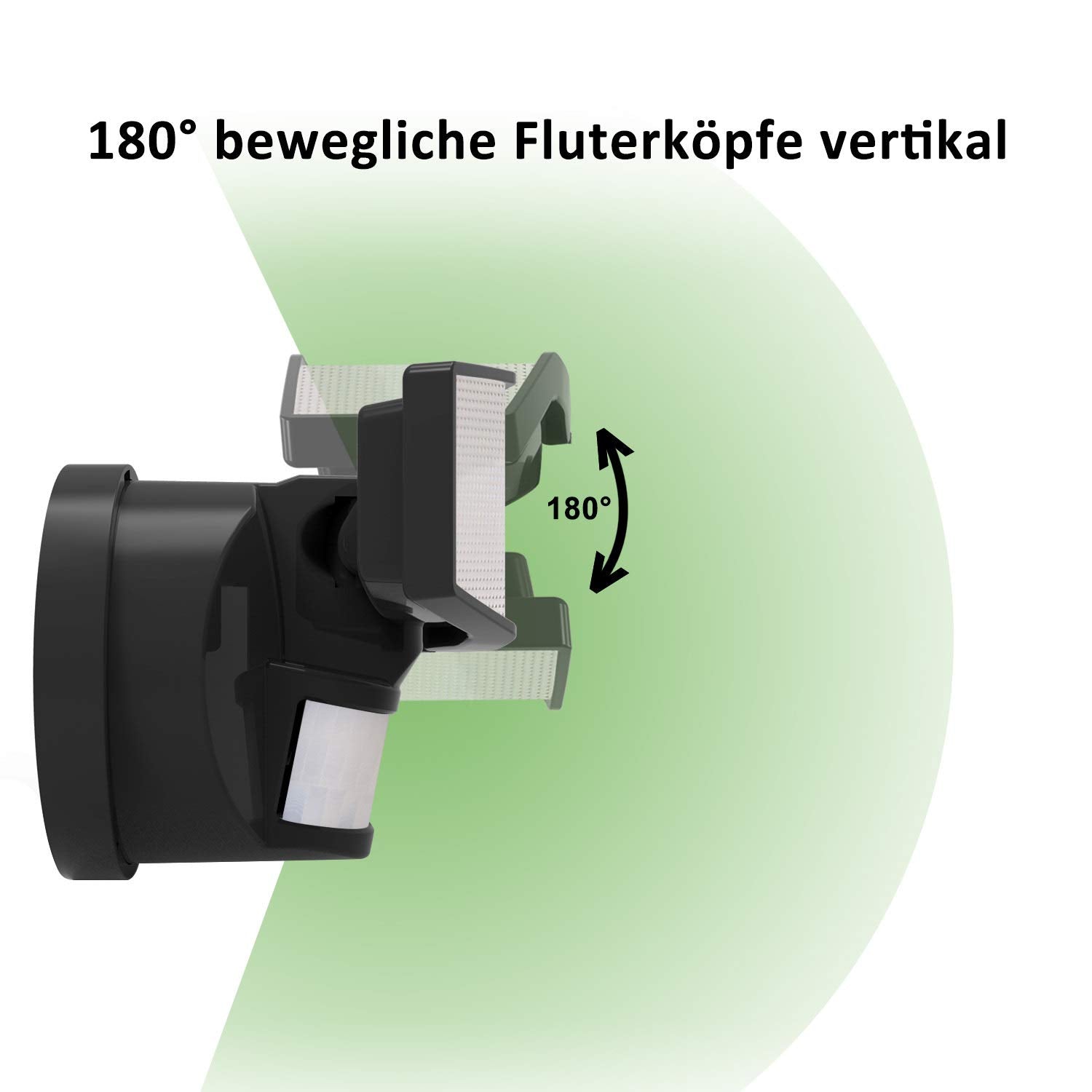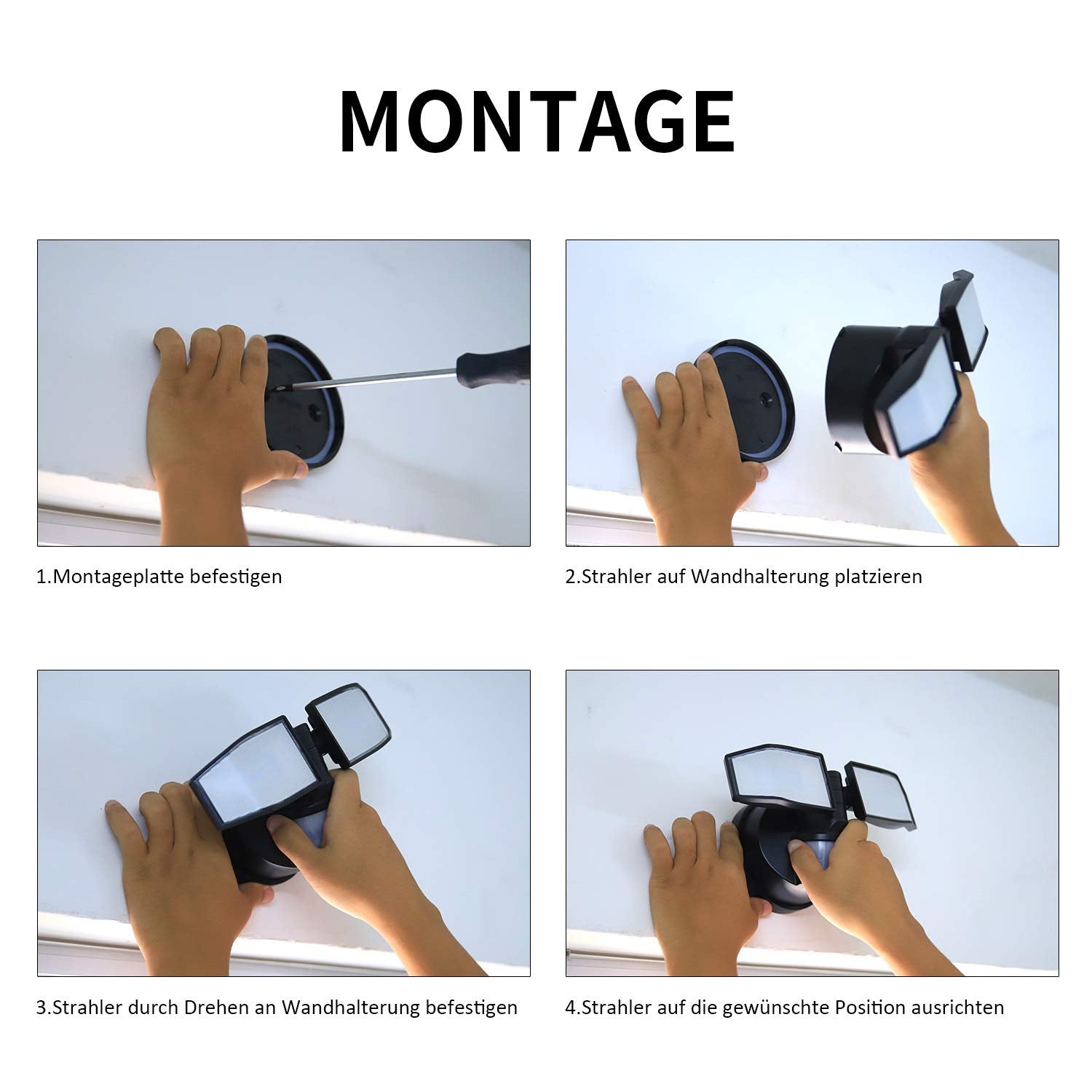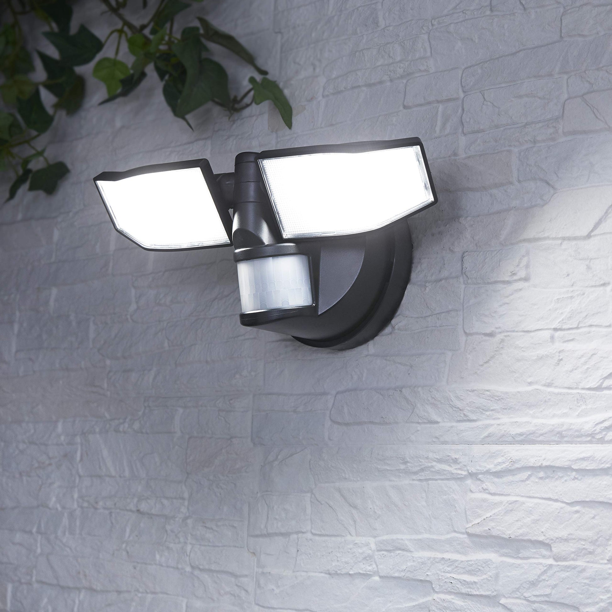 ["LED spotlight for outdoor use - ideal for places without direct power supply","Long-lasting runtime by using 3x LR14 1.5V C batteries (included)","Perfect adjustment options: horizontally and vertically adjustable floodlight heads","Infrared motion sensor with 180° detection angle and realistic 6m range","Included: LED battery spotlight, mounting material, user manual, 3x LR14 1.5V C batteries"]