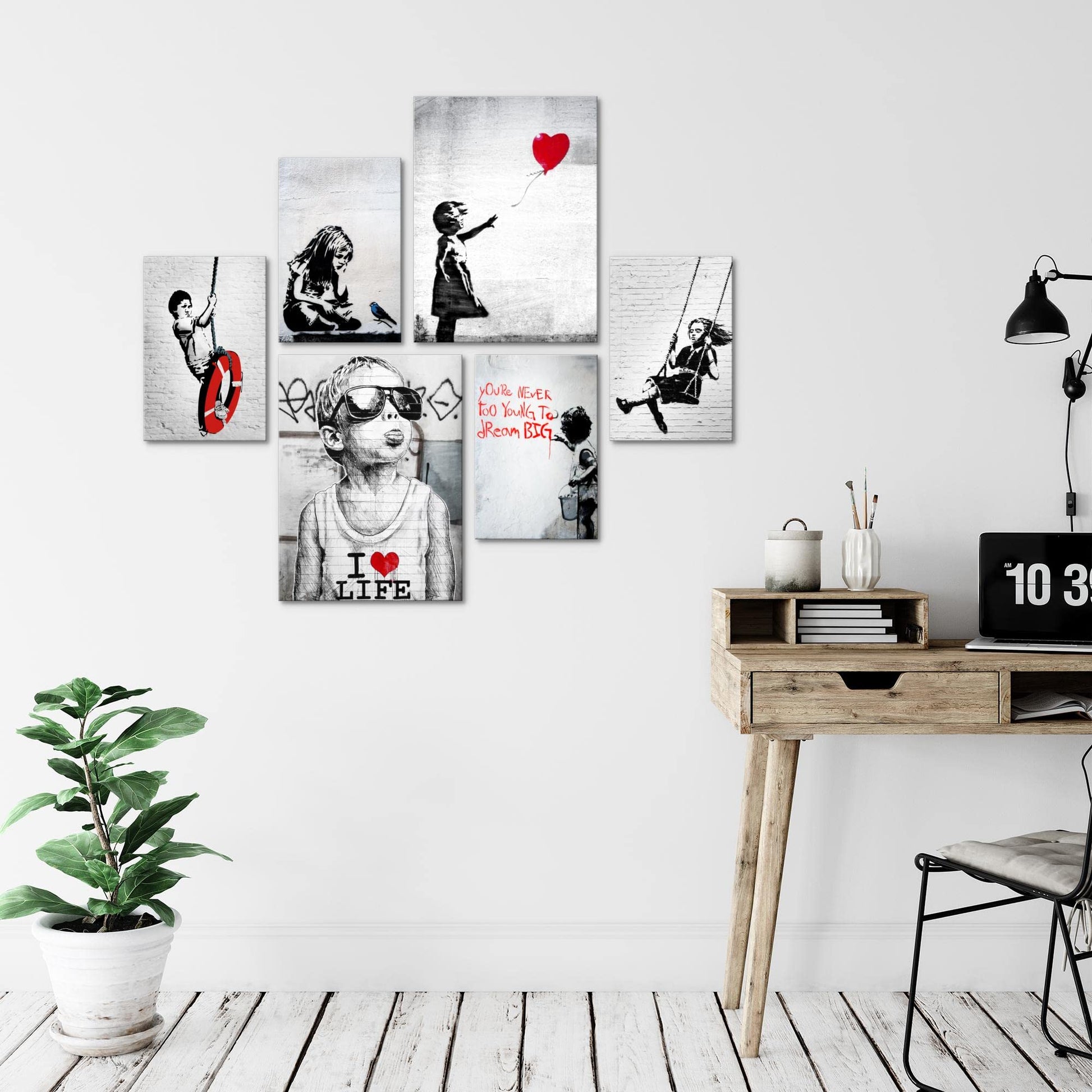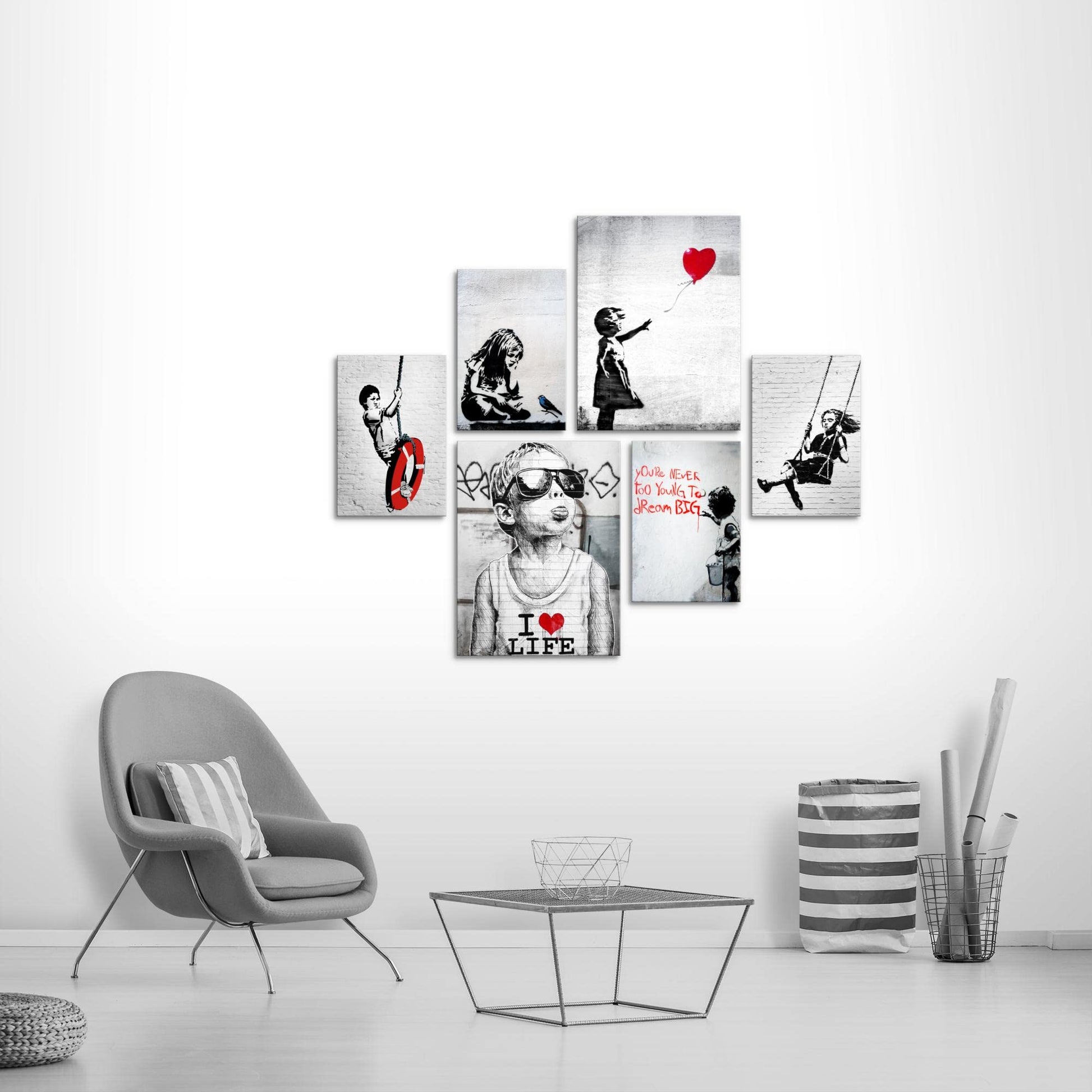 Novart Wall Art Set Banksy Collage Street Art Gray - NO EXTRA FRAME NEEDED - Modern Decor - Living Room Office Loft N003163a