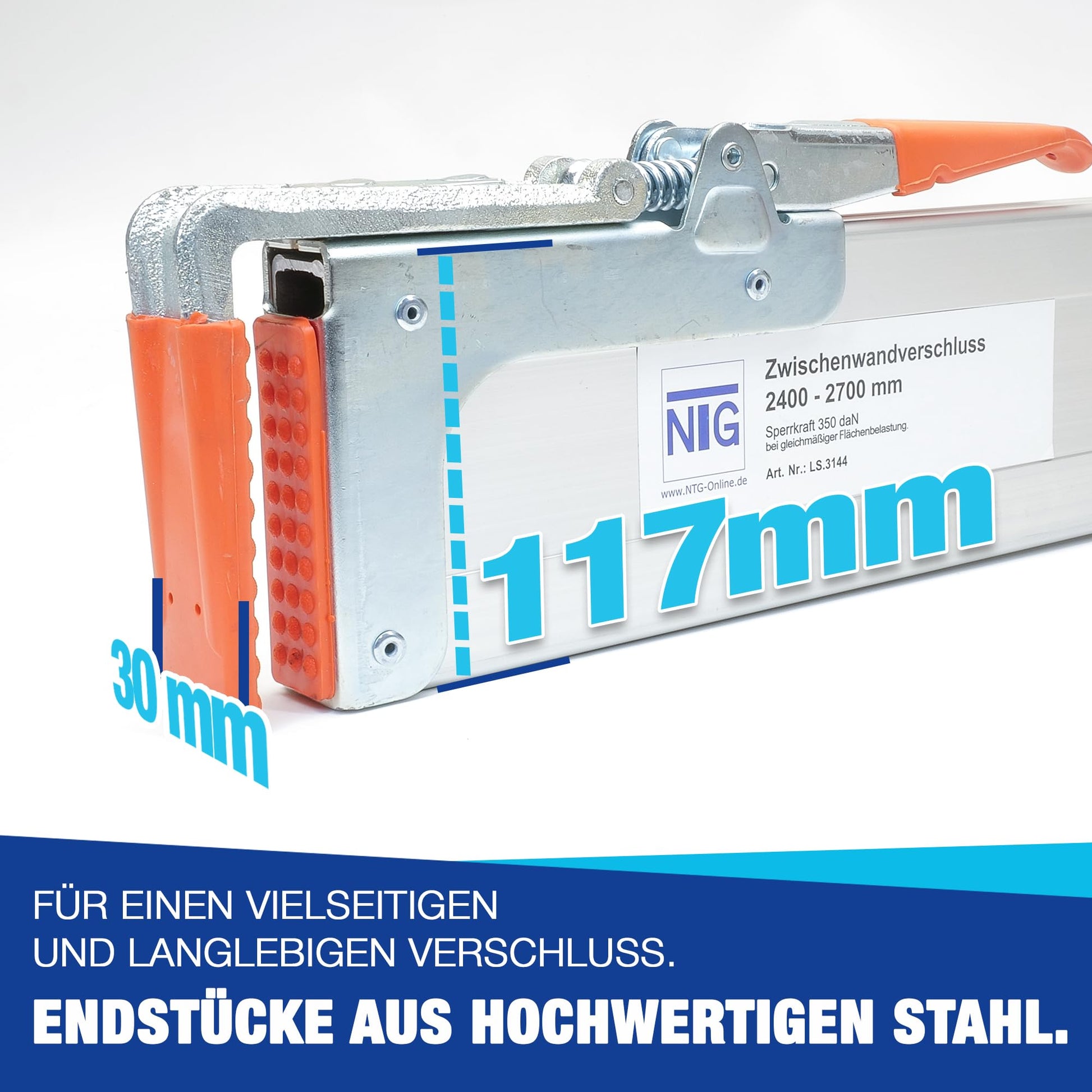 NTG aluminum partition closure | clamp board | for widths from 2400 to 2700mm | cargo and transport securing for cars, trucks, trailers and vans