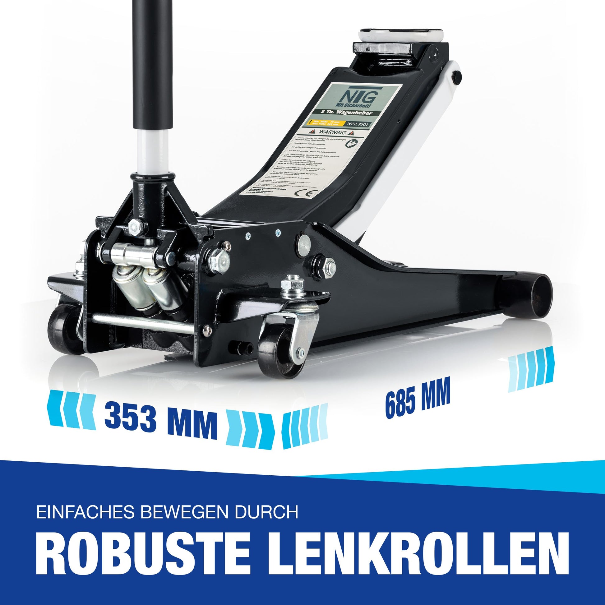 "✔ EXTRA LOW PROFILE: With a minimum height of only 75 mm, the trolley jack can be easily positioned under low vehicles."