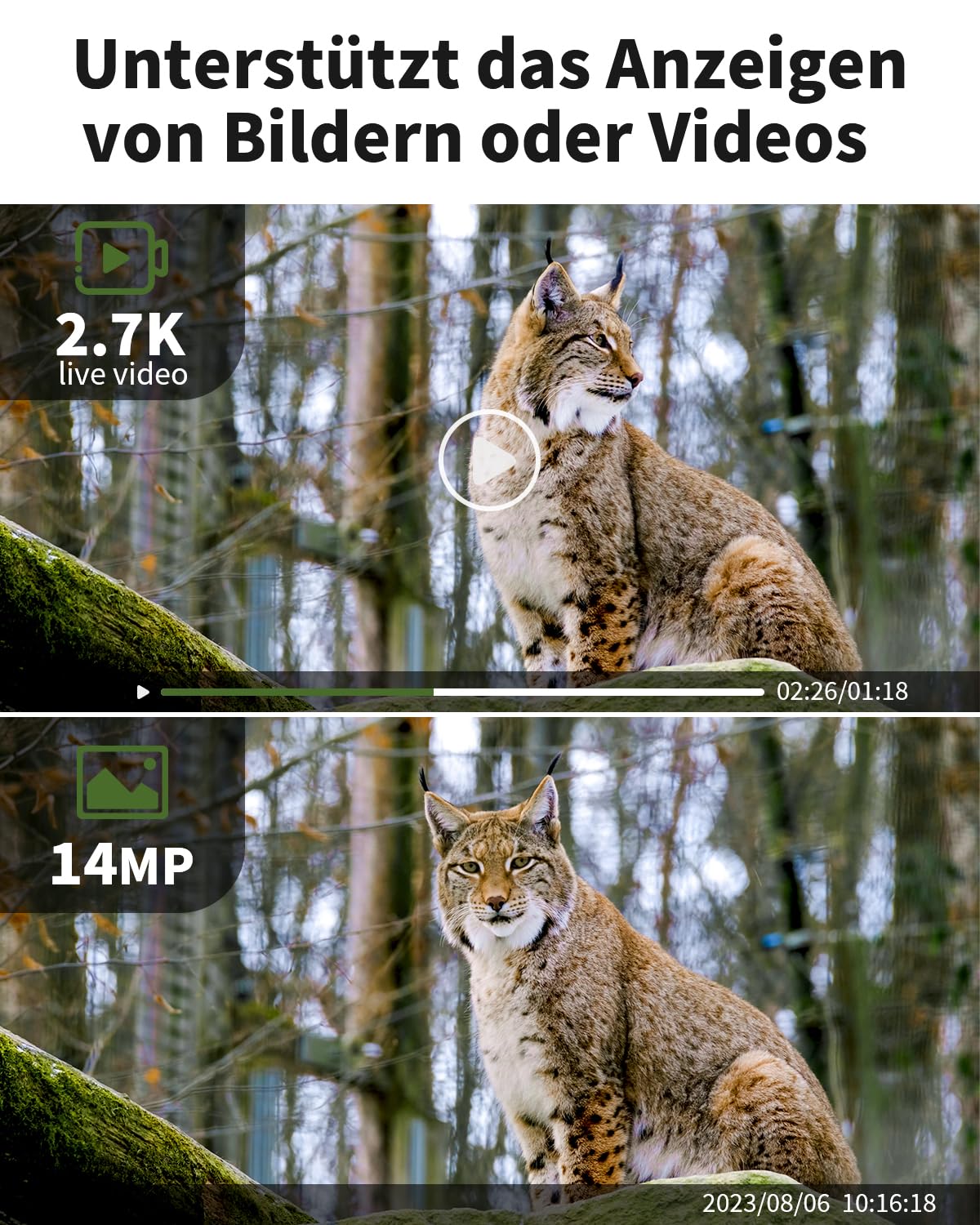 "2.7K High Definition and Real-time Video: The night vision trail camera offers 2.7K HD quality, allowing you to view real-time footage or recorded highlights from home via an app. This makes operation easier and more convenient compared to traditional trail cameras."