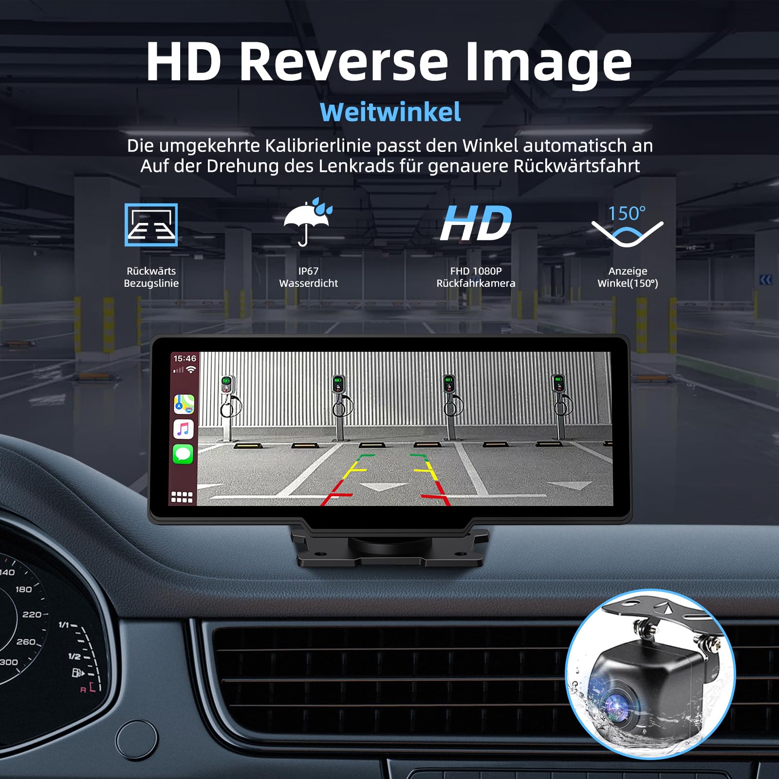 ["9.3-inch Wireless Carplay This carplay features built-in Apple CarPlay & Android Auto functions for you to achieve wireless connection between the car and mobile phone, car control to share phone map/music/phone information and other app software, support voice control, such as Siri and Google Assistant.","Front & Rear Dual Cameras This carplay display is equipped with a 4K dashcam and a 1080p AHD rearview camera with auto recording function, which record both front and rear views and support split screen display. Convenient for reverse driving, 360° viewing angle makes your driving safer.","Bluetooth & FM Transmission This car multimedia player comes with Bluetooth-enabled car radio, stable Bluetooth and FM transmission, allowing you to be safer during hands-free calls and audio communication. There is also an AUX IN function, you can enjoy more audio playback through the AUX cable.","Intelligent Voice Control & Navigation This wireless carplay with intelligent voice control, you can use Siri/Google Assistant to make calls and play music, very easy to operate. Wireless Carplay can be connected via your mobile phone and can synchronize GPS navigation in real time.","Plug & Play This car display is easy to install and works with a wide range of car models, supports 7-32V cars and trucks, etc. You can connect the carplay display directly to the dashboard and play by plugging in the cigarette lighter, no need to dismantle the car console, just keep the original radio in the car.","Professional Service Enjoy high-quality products with confidence. Problems with the application? Problems with use? Please contact us, we are ready to help you solve any problems."]