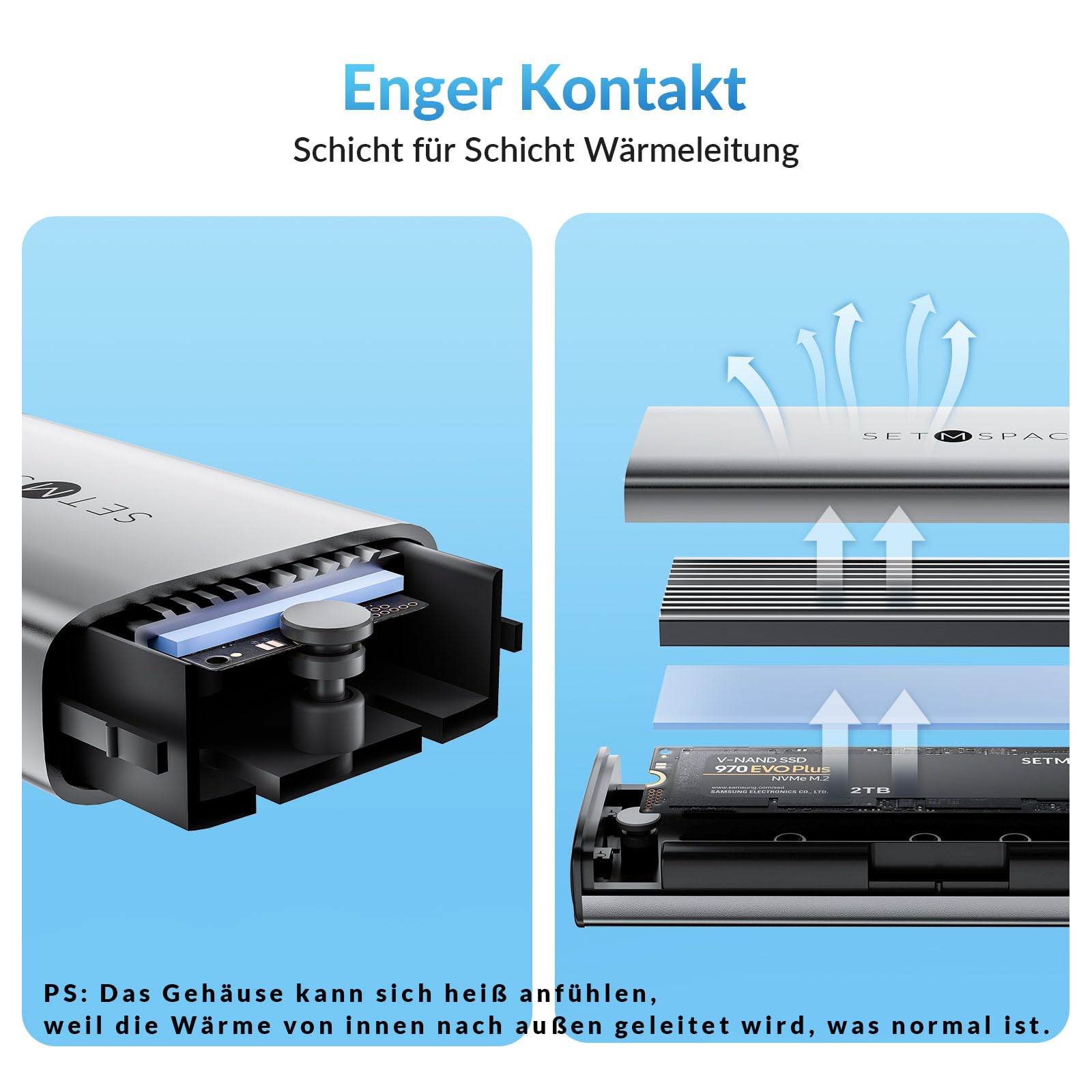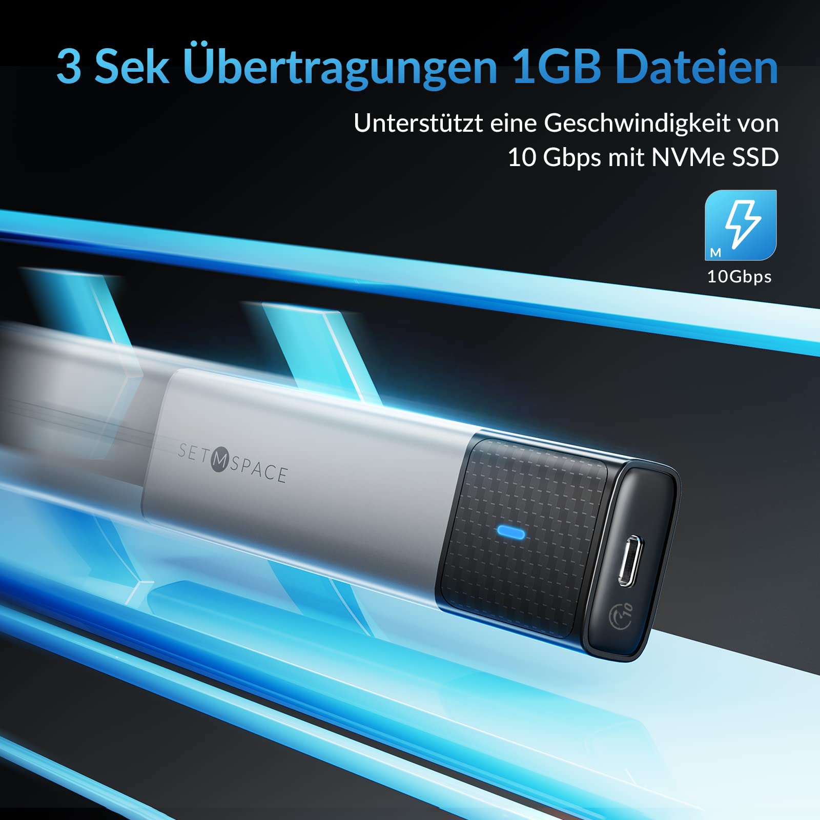 NVMe Enclosure [Tool-less], SETMSPACE M2 SSD Enclosure [NVMe & SATA], M.2 SSD Enclosure with 2-in-1 Cable, M2 USB Adapter for M-Key and B&M-Key, Aluminum Gray M2 SSD Case.