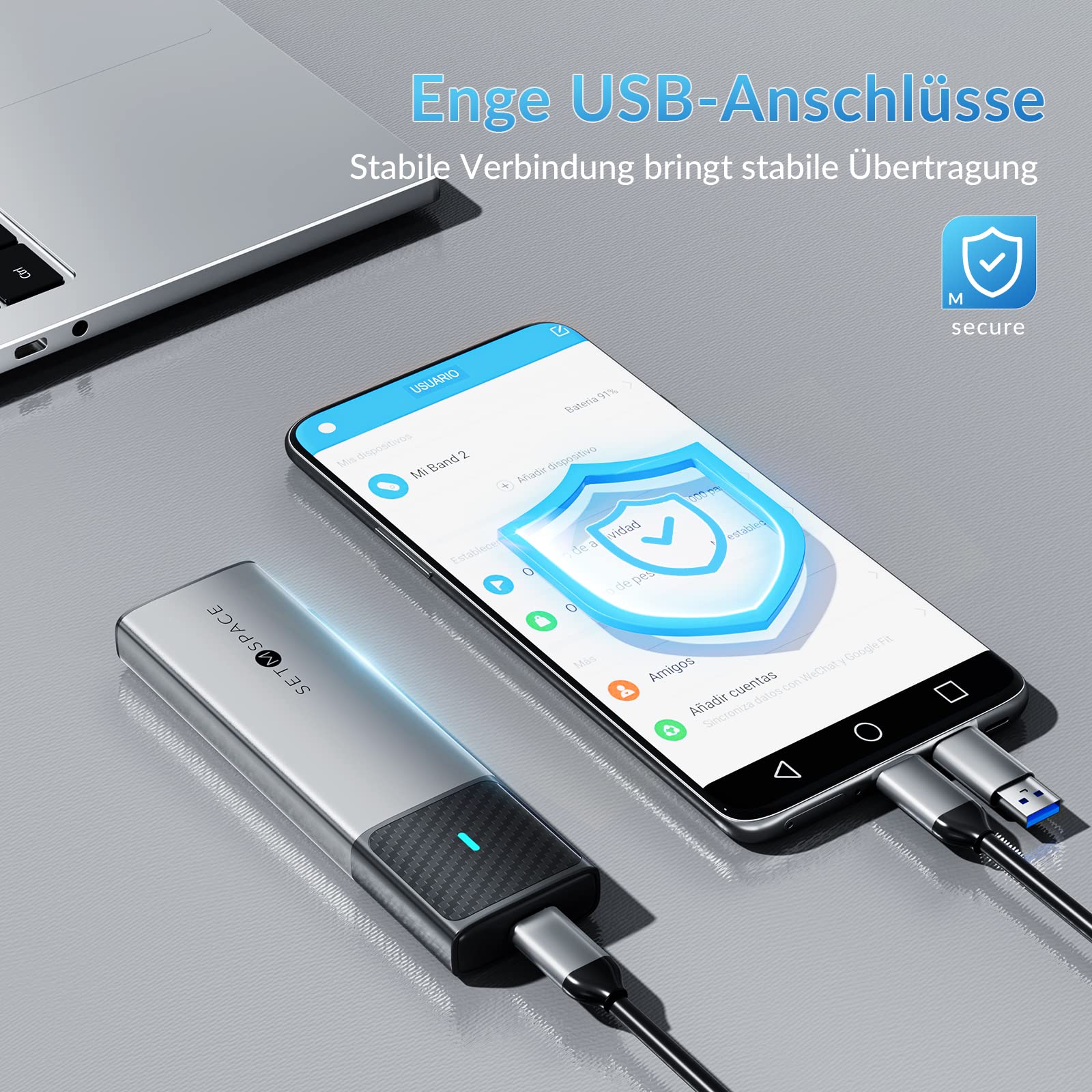 ["Above average speeds"] The SETMSPACE casing can achieve speeds of up to 1064 MB/s (Read) and 1051 MB/s (Write), faster than the average speed in the market.
