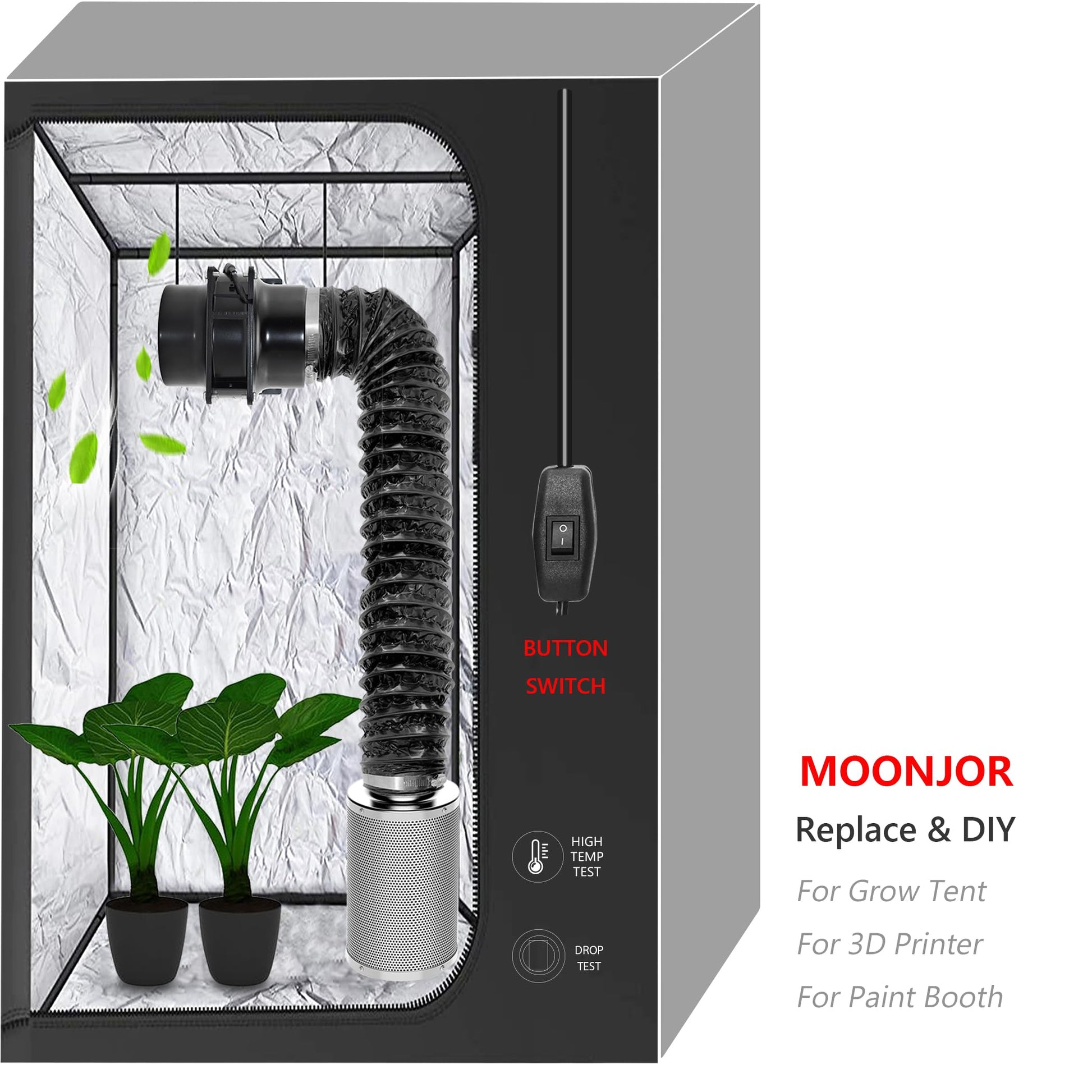 "2 IN 1 USE: Moonjor develops this fan based on muffin AC fans. You can use the duct inside or remove it. Allows for the fan's use in different environments and also changes the traditional square size to round."]
