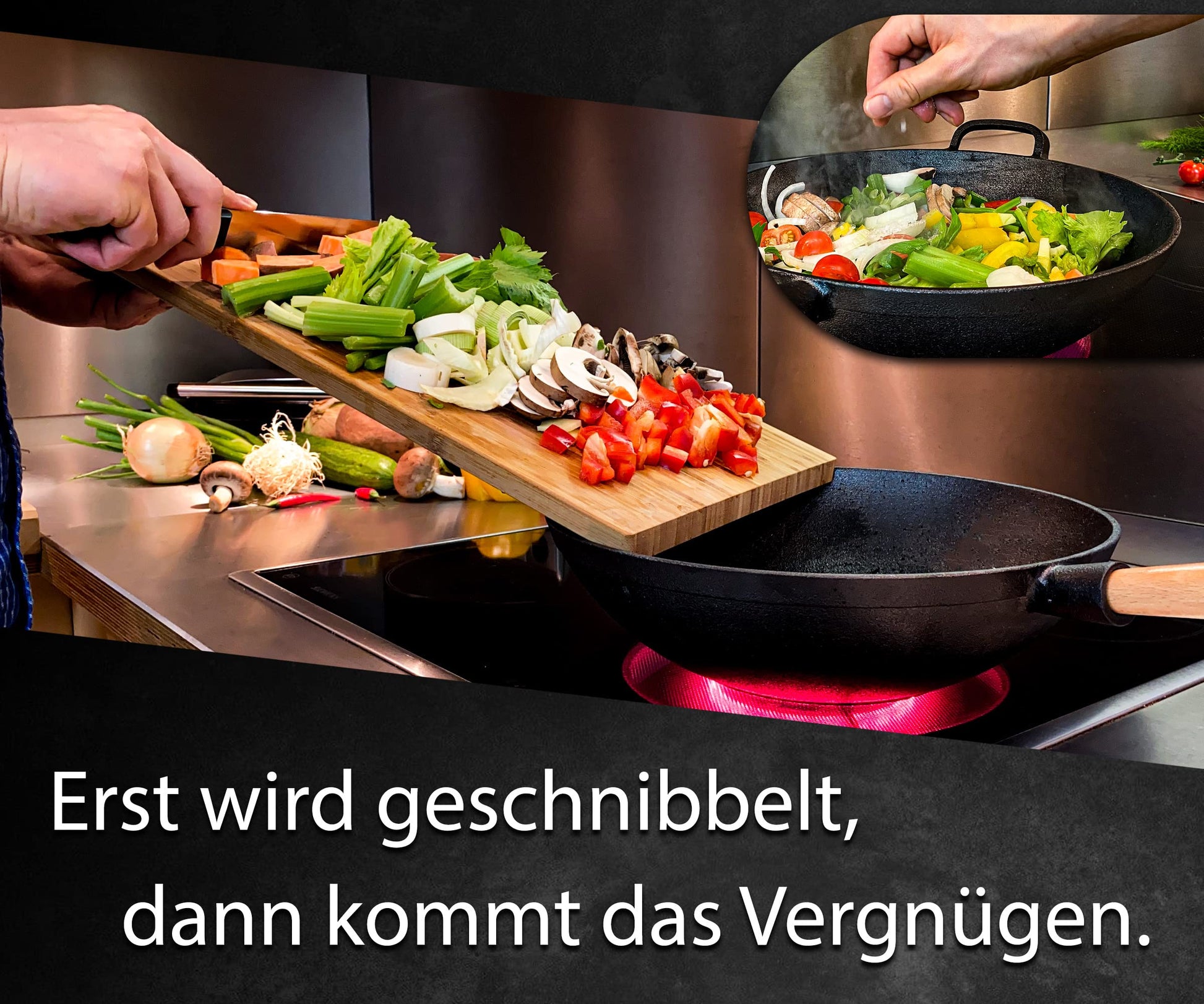 "Cooking with passion - From preparation to the last bite - our Oakfire cast iron wok pan allows you to experience cooking at the highest level. Order now and rediscover the joy of cooking!"]