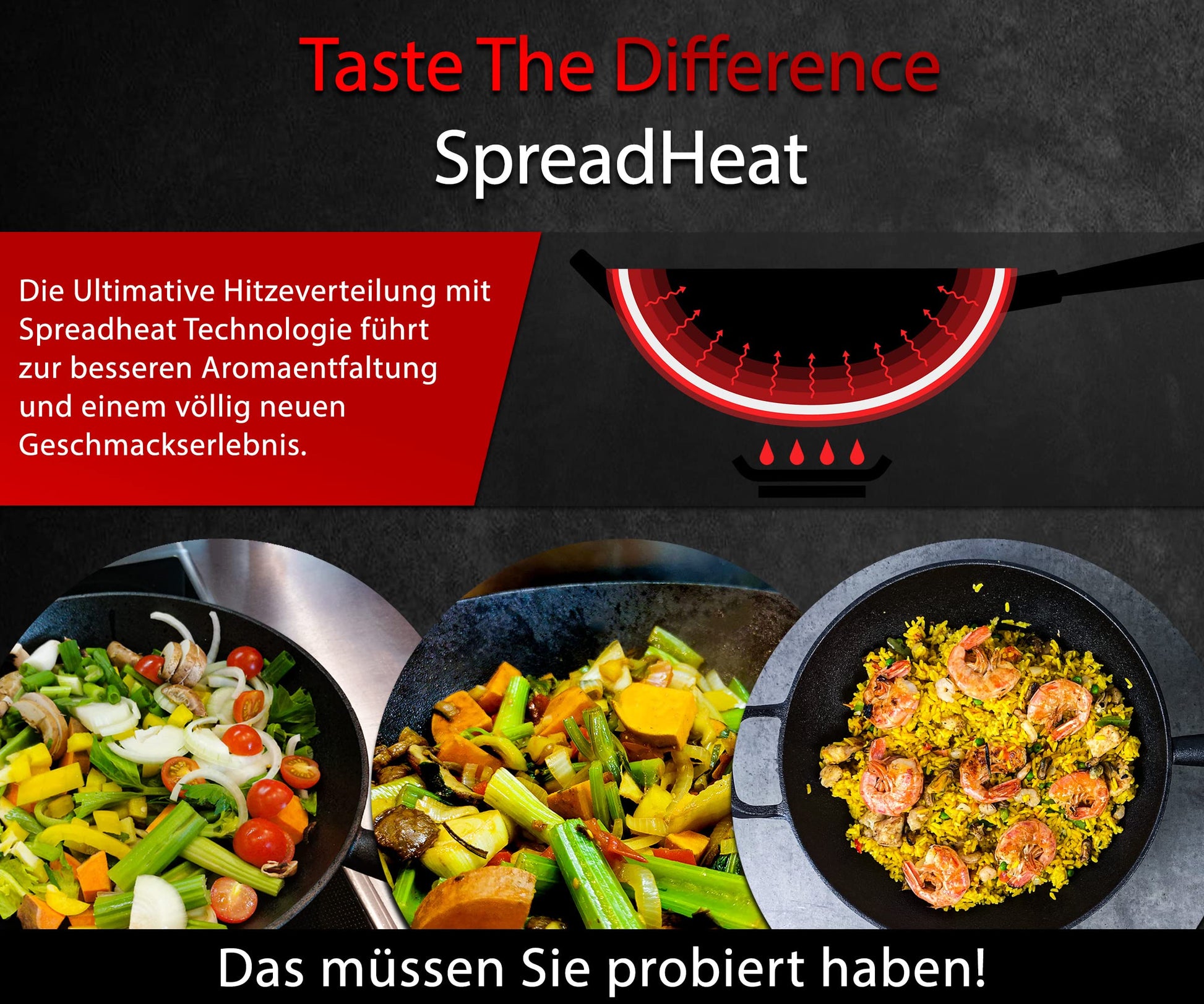 "We Believe in Taste! - The SpreadHeat technology ensures even heat distribution in the induction wok. This will result in your dishes being especially aromatic. Look forward to perfectly cooked meat and vegetables with intense flavor.",