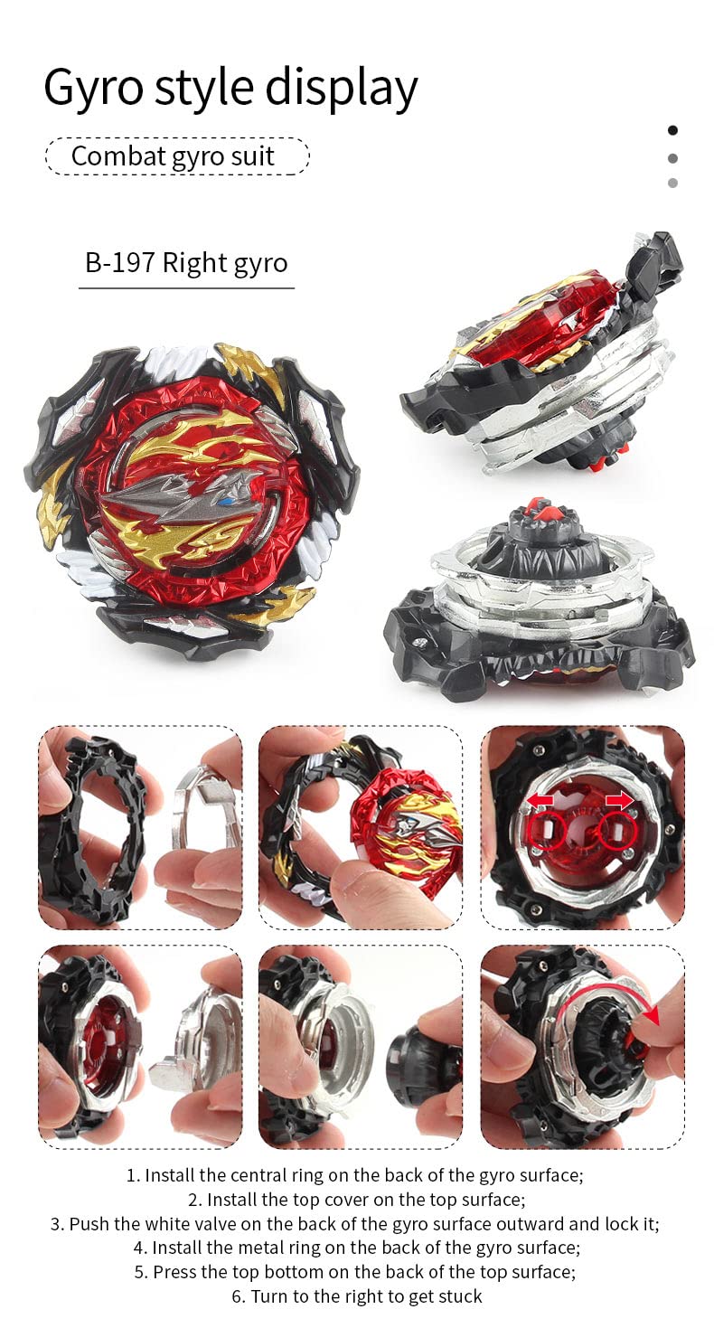 "WONDERFUL LEARNING TOY: It improves children's motor skills, increases their patience, and promotes their sense of competition. This Battle Gyro Set includes 12 Burst Gyros and a Dual Launcher Kit, giving children more options to play. It is also possible to share this toy with friends to promote interaction among them."