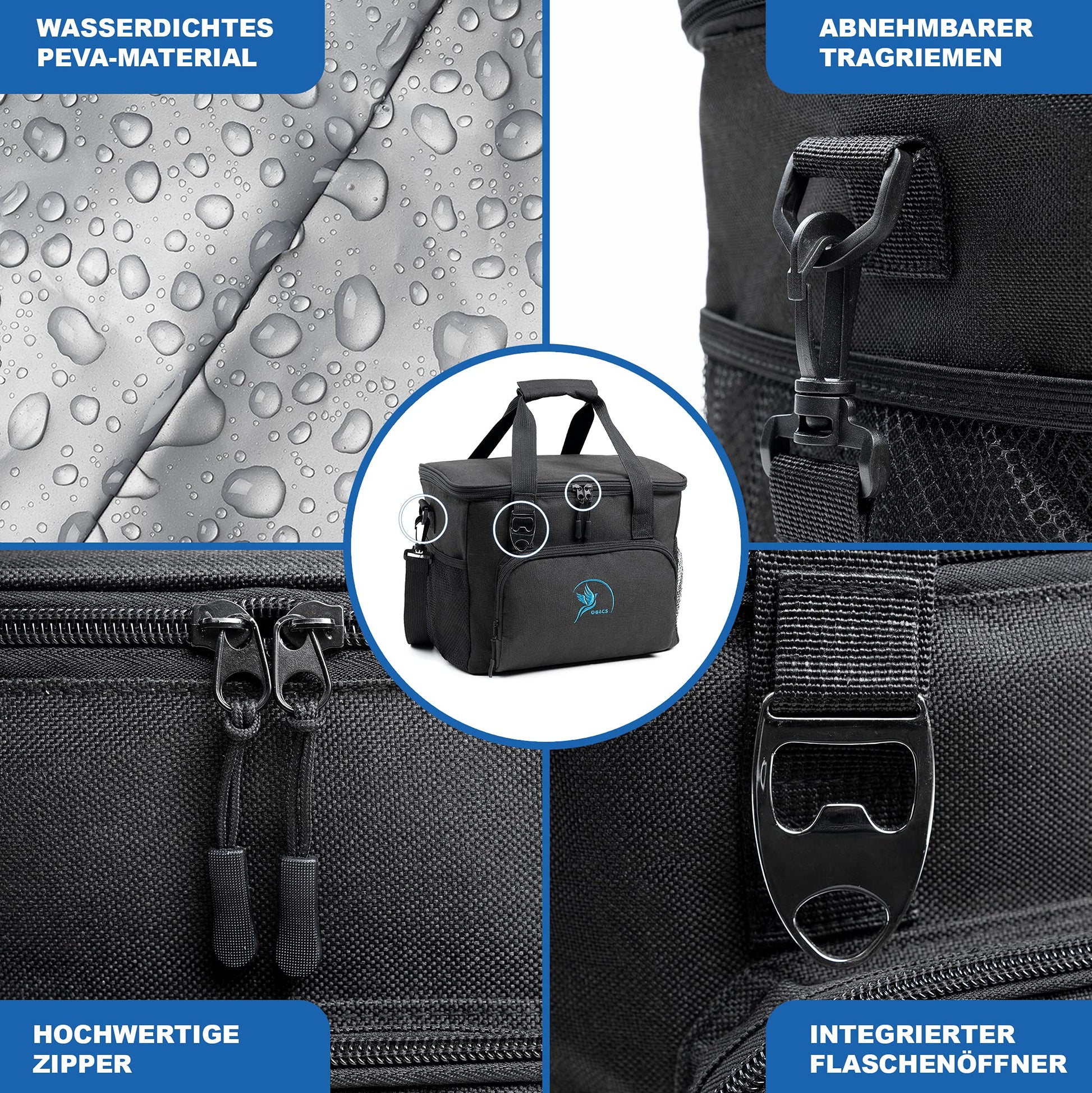Obics small cooler bag 20l portable cooler with cooling pack - insulated freezer bag black without electricity passive picnic bag - thermal bag food bag camping, car & bike insulated lunch bag
