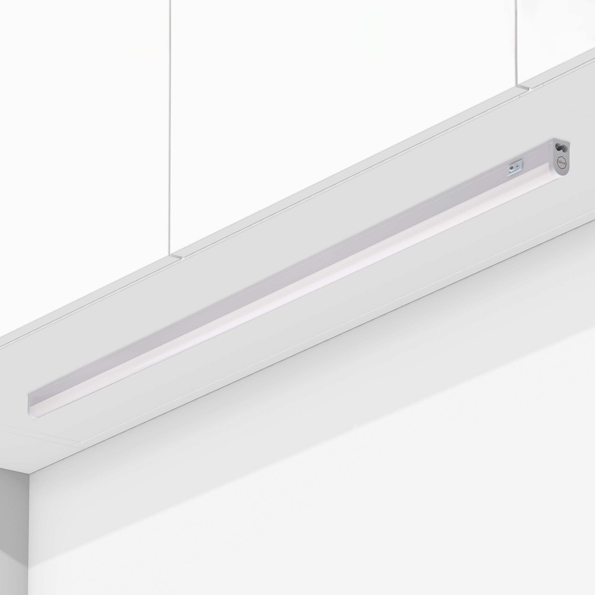 ["LED LIGHT STRIP WITH SWITCH for indirect & direct lighting to complement wall lights & ceiling lights I Under cabinet LED Comfort Light is energy-saving & glare-free with opalized diffuser","PERFECT ILLUMINATION Contemporary LED task lighting with high luminosity for good light - 1620 lumens I LED kitchen light warm white 3000 Kelvin in best quality","TRUE COLOR AND LONG-LASTING Color rendering index RA > 80 - colors appear almost as realistic as in daylight - high-quality LED kitchen lamp with a lifespan of over 25,000 hours","EASY INSTALLATION The plug-and-play LED light is mounted with mounting clamps at a 90° angle I For a light valance, you can connect up to 12 LED lamps in a row - simple & easy","Scope of delivery: Under cabinet light 114x2.4x3.6cm (LxWxH) white, 1.8m power cable with Euro plug and C7 plug, 10cm connection cable (C7 to C8), connector, mounting clamps for under cabinet and wall mounting"]