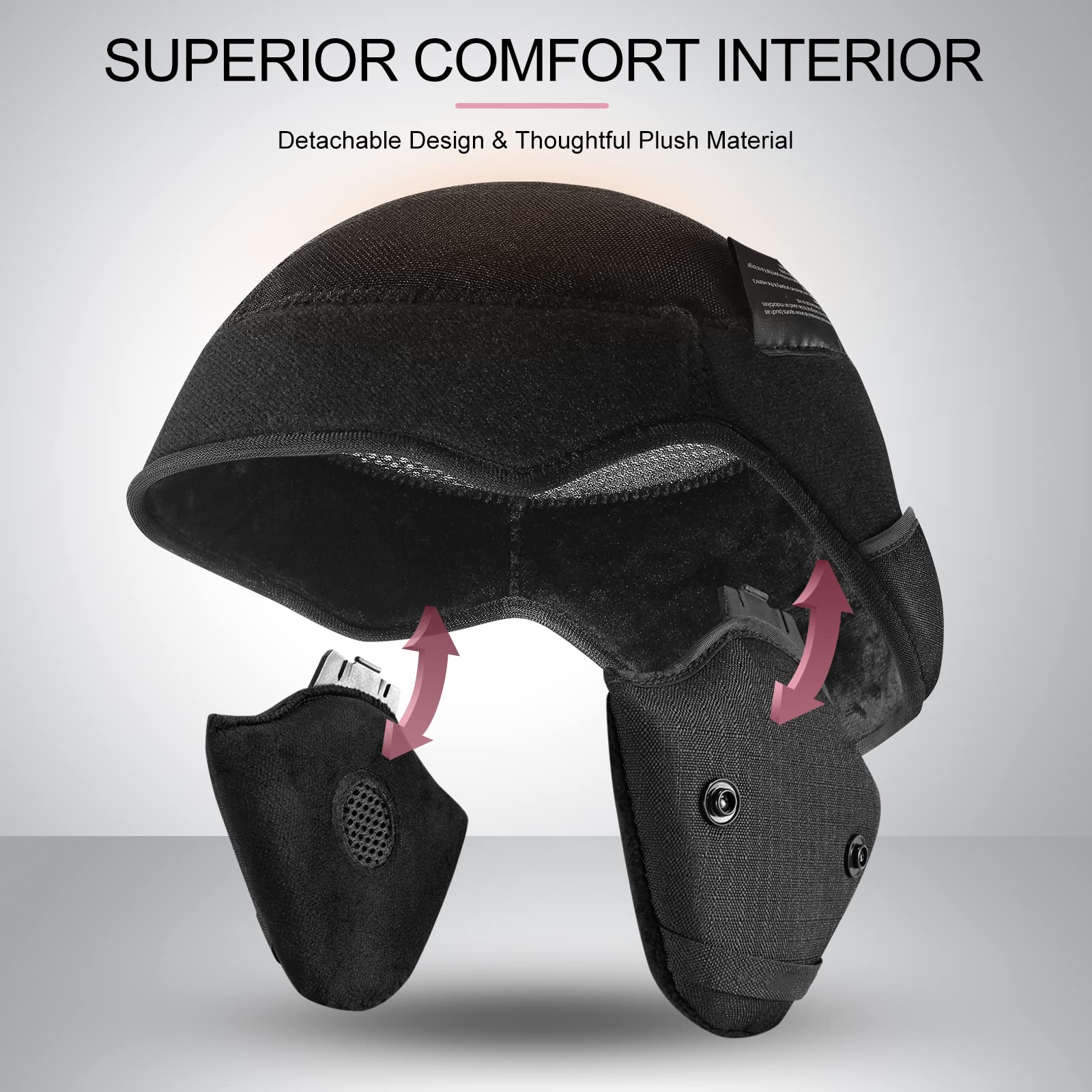 Odoland ski helmet with ski goggles for skiing and snowboarding, adjustable size, with ear flaps for men, women, and teenagers.