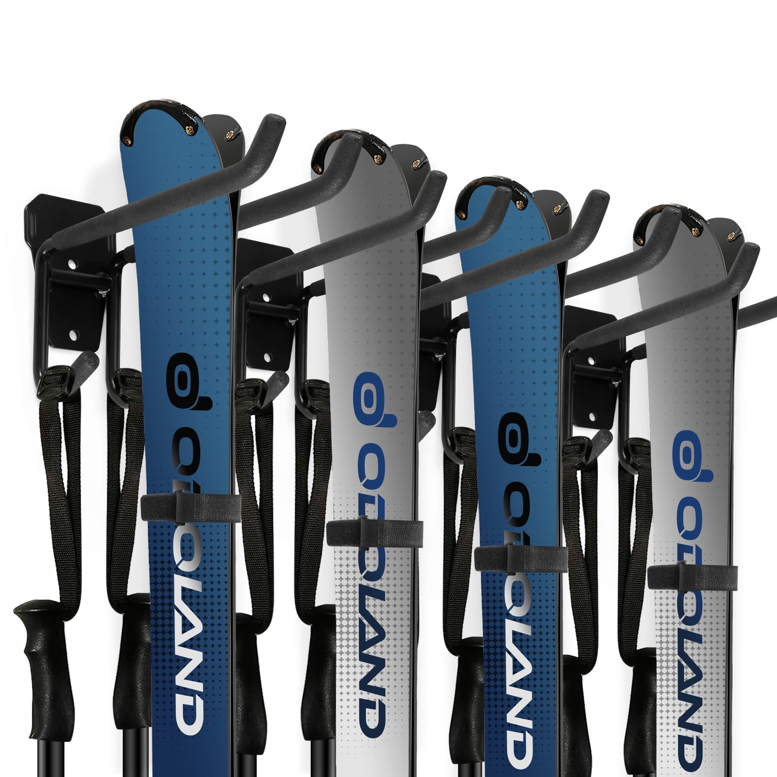 Odoland ski holder wall mount rack with 4 ski strap holders 2 pairs snowboard rack wall mount home and garage heavy duty storage hanger.