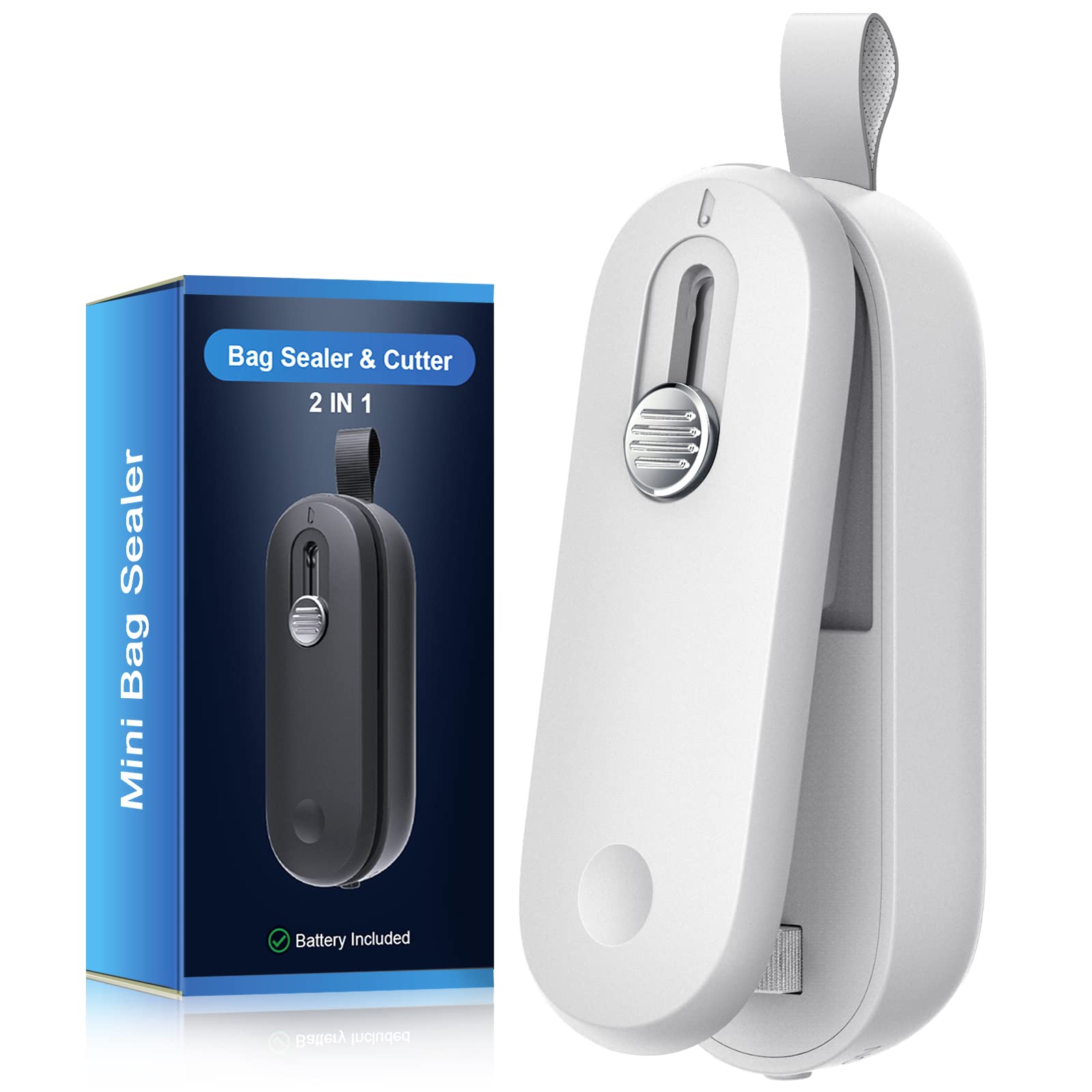 ODSD Mini Heat Sealer, 2 in 1 Bag Sealer with Cutter Sealing Machine Hand Sealing Device for Plastic Bags Pouch Chip Bags Food Storage Snack (White)