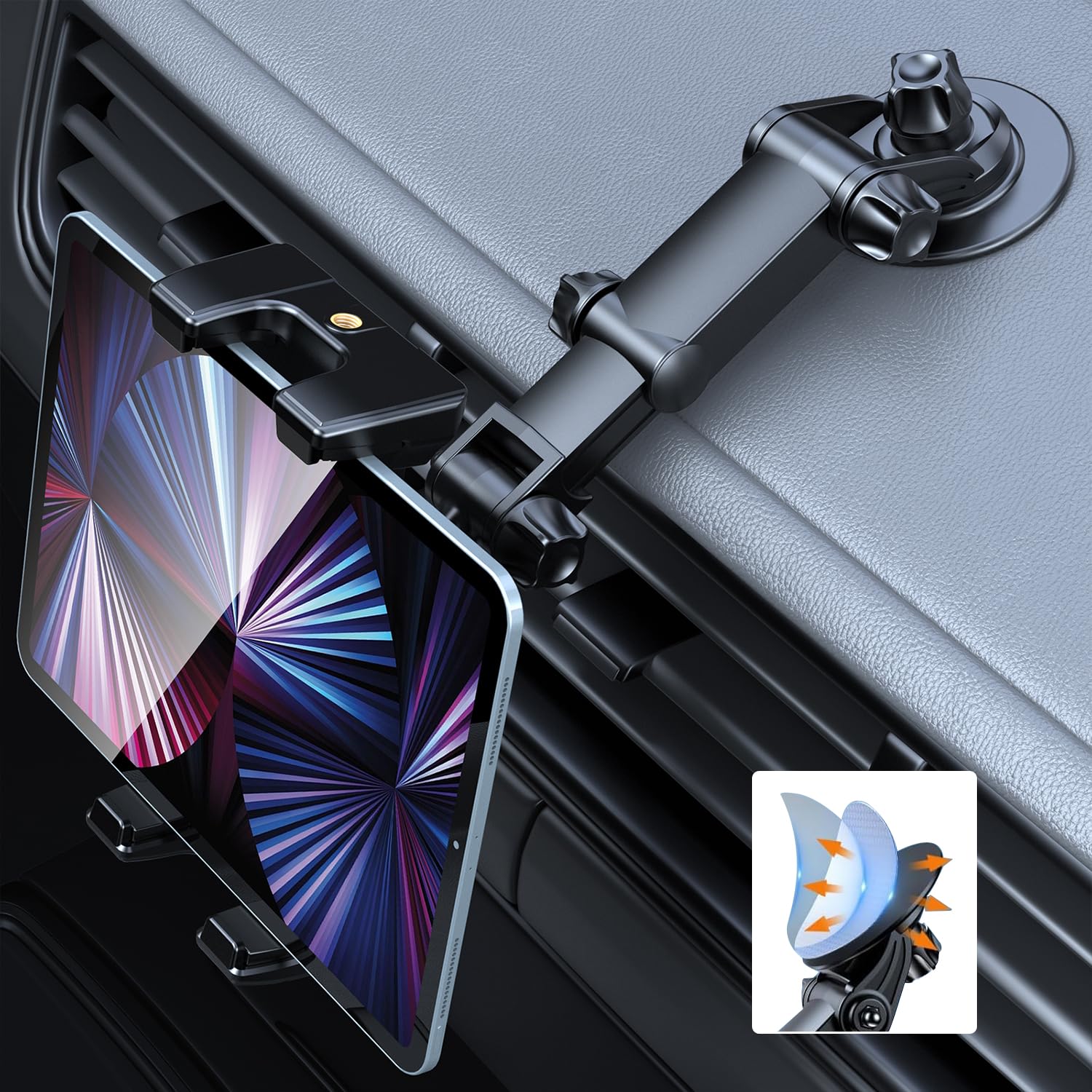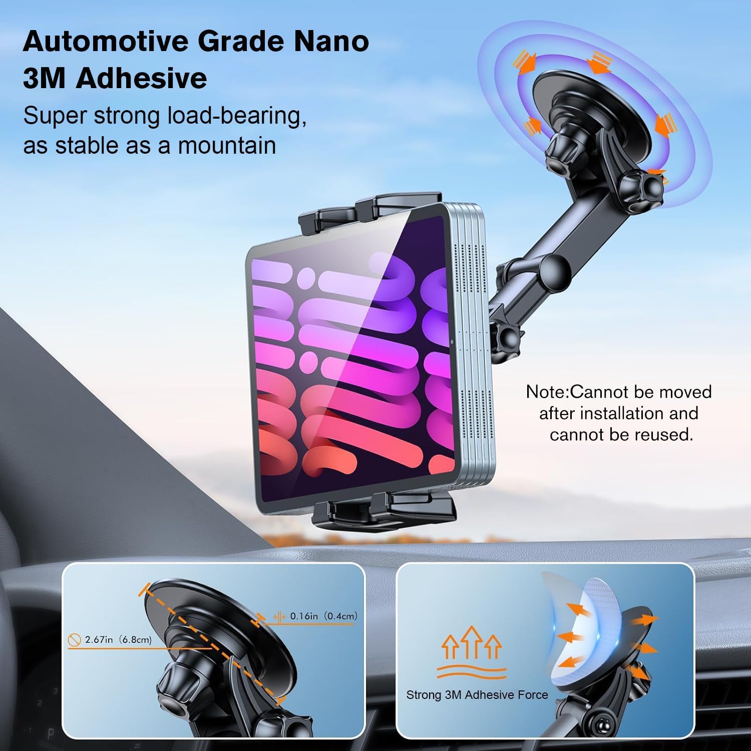 "[STABLE PRO] To maintain the stability of the tablet car holder, the adhesive force of this holder is very strong to keep your tablet stable while driving, without worrying about it falling off. The special design of the car tablet holder can withstand the weight of a heavy tablet, so you can drive with peace of mind.