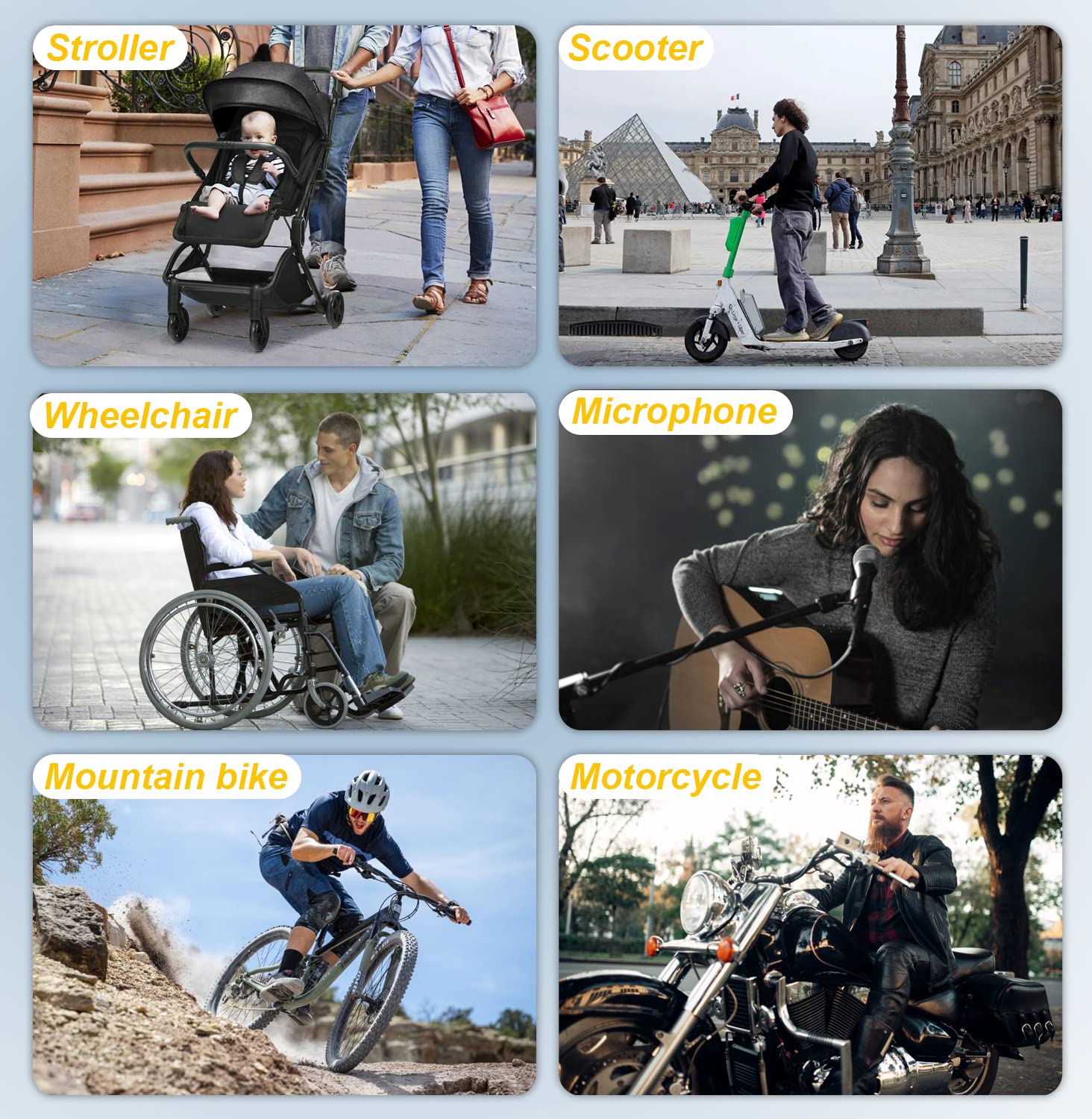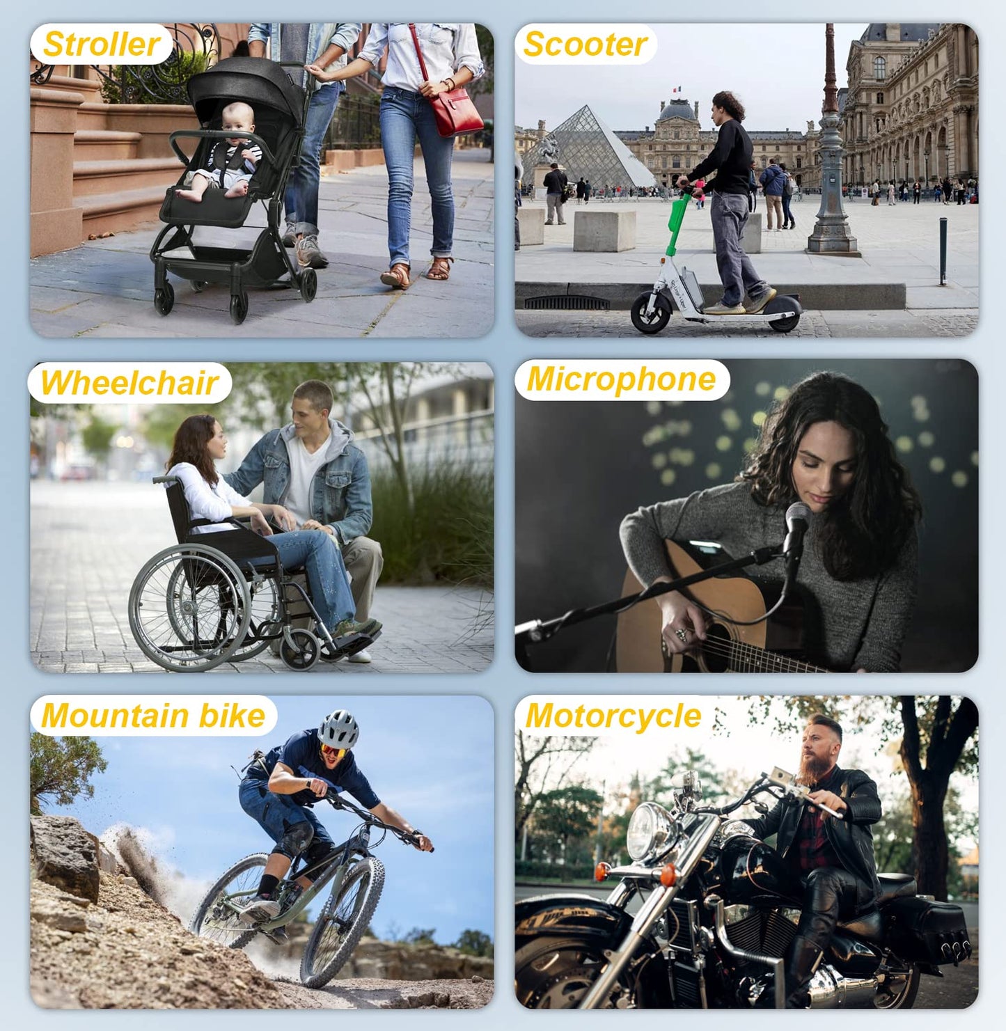 👍【Wide Application】The universal handlebar phone holder can be easily and securely clamped to any tubular bar (15mm~45mm), not only for spin bikes, indoor bikes, home trainers, ellipticals, gym treadmills, cross trainers, ergometers, but also for wheelchairs, strollers, microphone stands, etc.