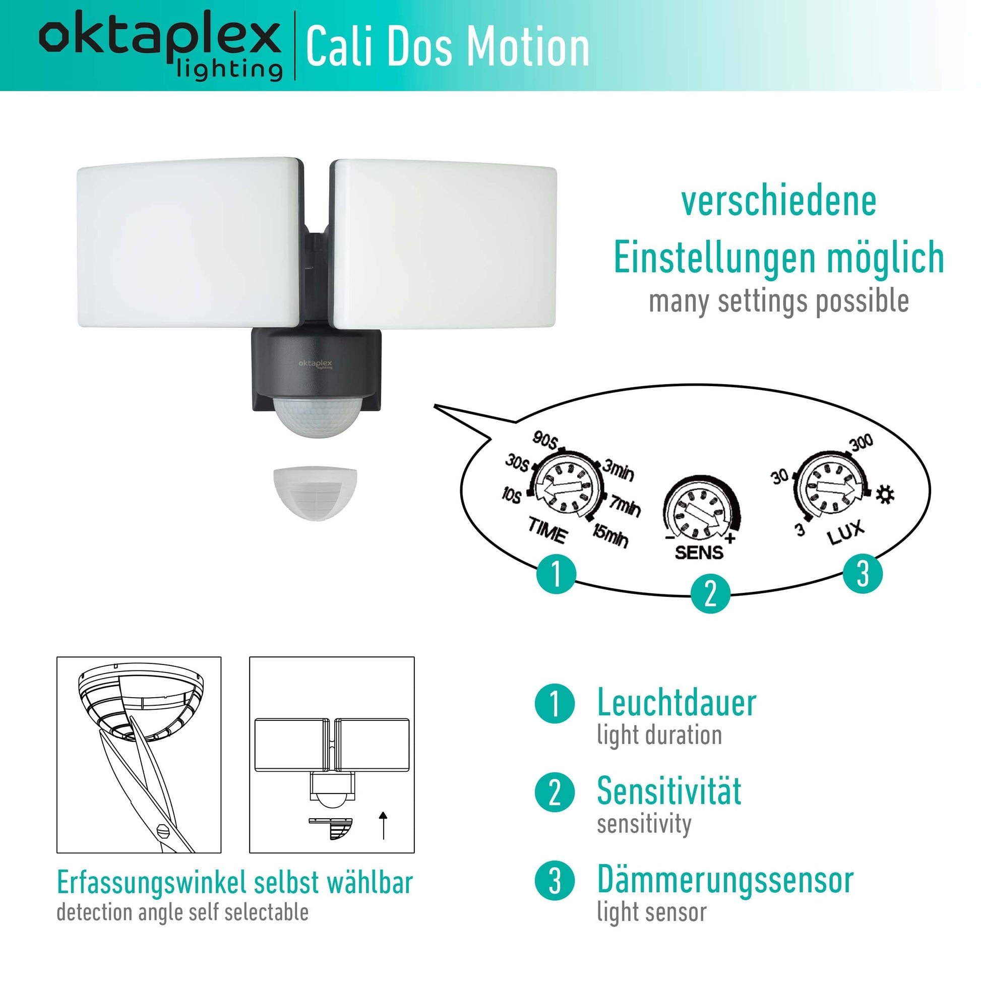 Oktaplex lighting LED spotlight with motion sensor for outdoor use Cali Dos Motion - IP65 Two heads 40W 3000K Warm White - outdoor spotlight in anthracite with master function