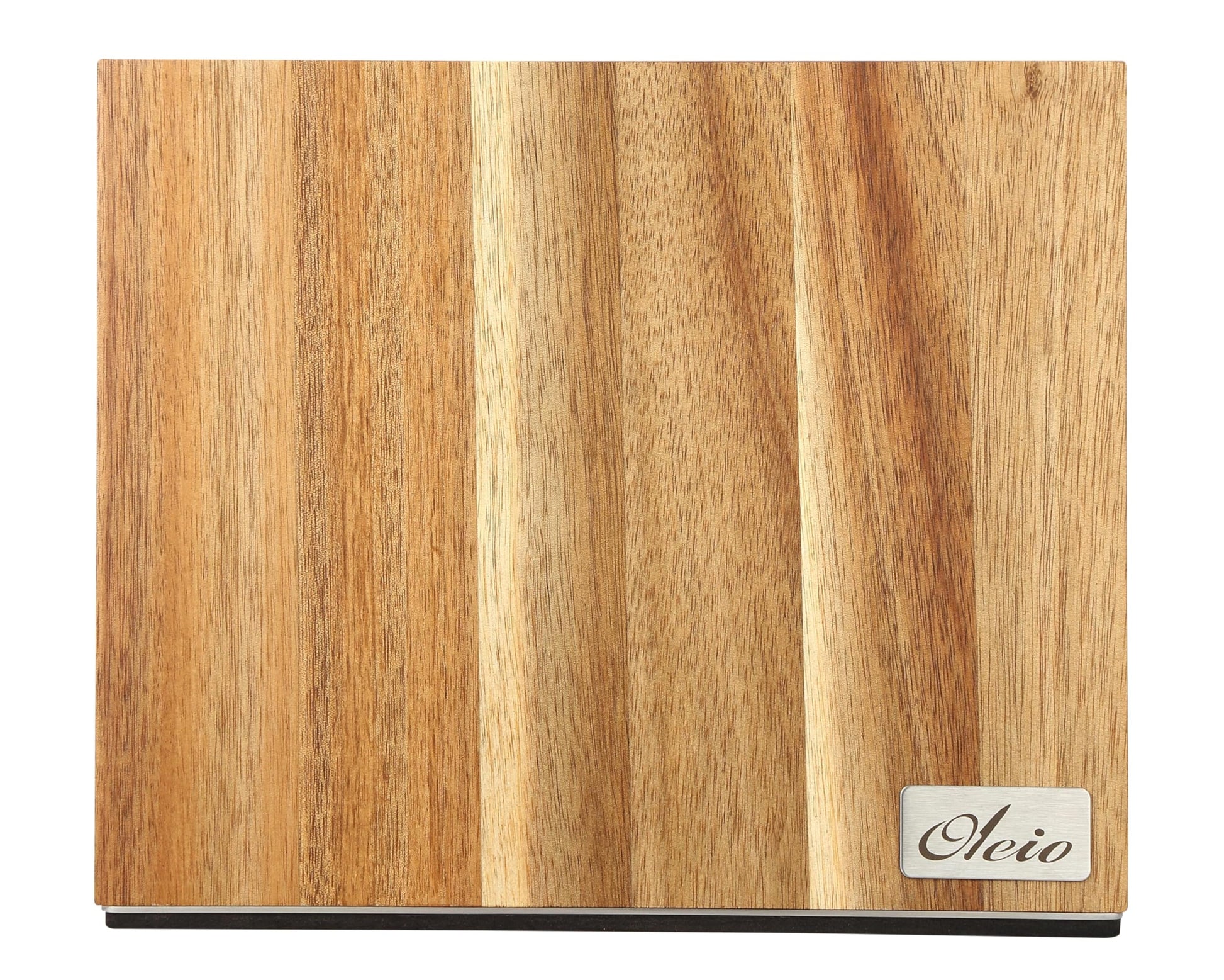 Oleio Magnetic Knife Block - Kitchen organizer made of acacia wood with magnetic strip for up to 6 knives - stainless steel base & non-slip pad - 3.8 cm thick knife block without knives - knife stand