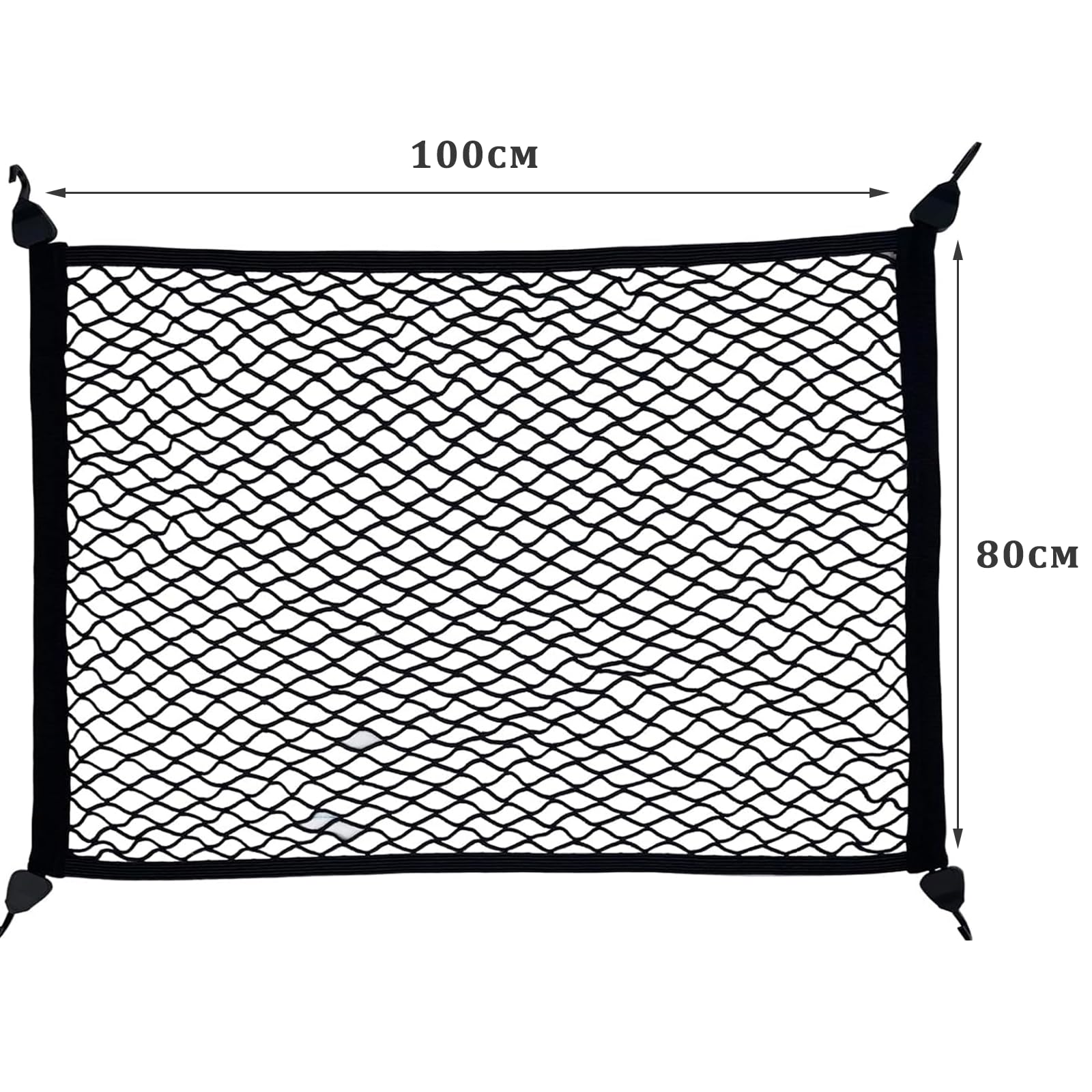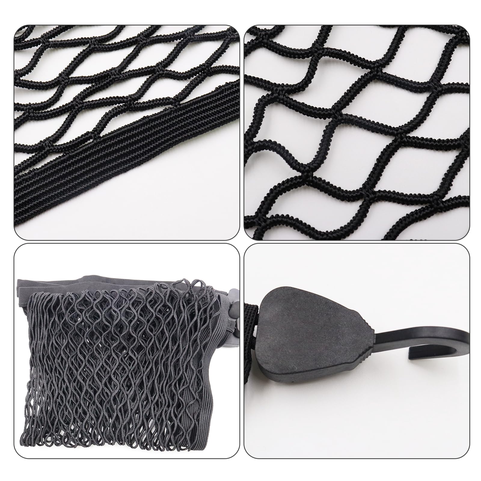 ["Super Stretch Car Trunk Net: The trunk net is made of high-quality imported latex silk material that is durable. The fully elastic net surface of the storage net can extend from 31.5" x 39.4" to 82.7" x 55.1" in length.",