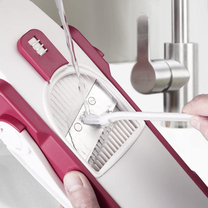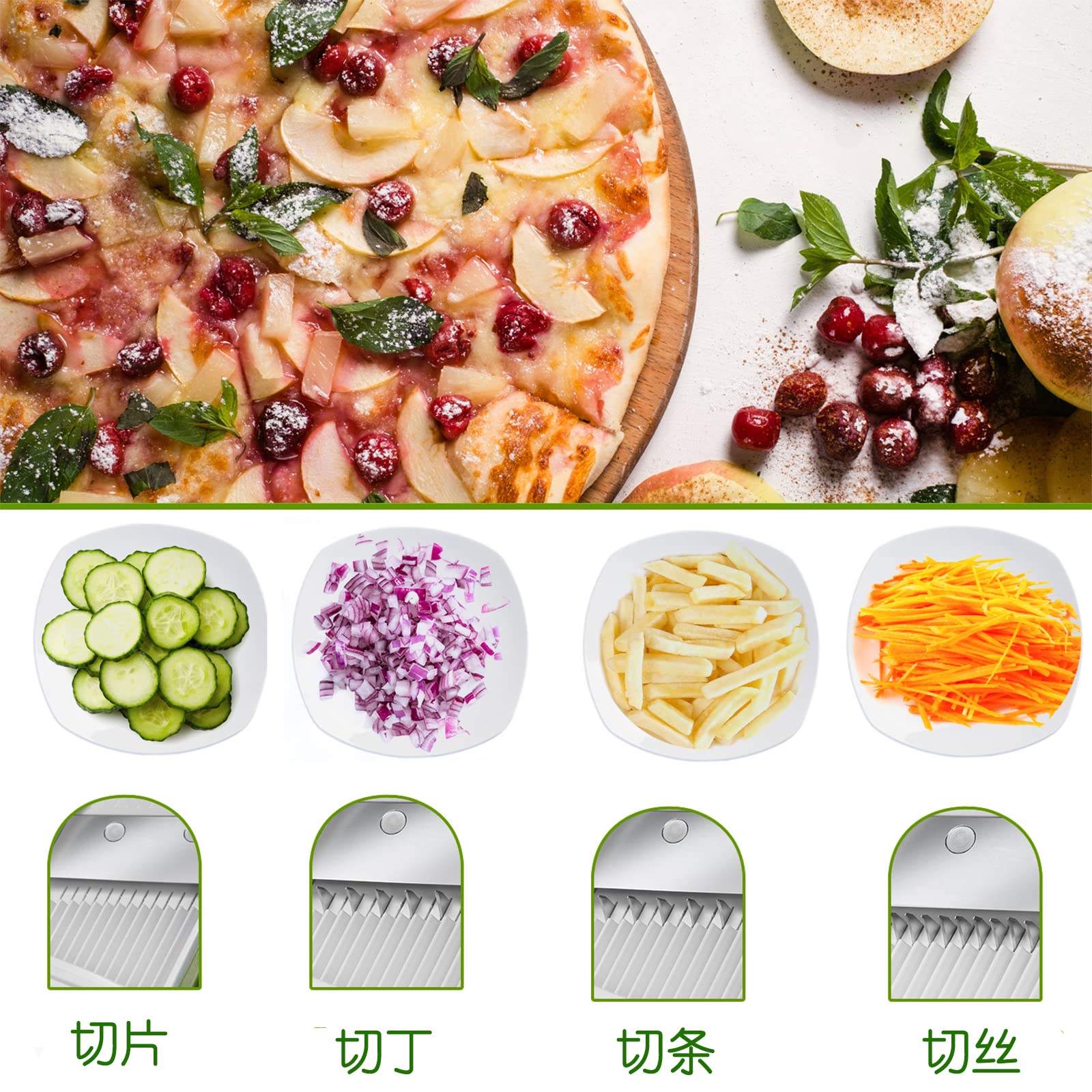 ["1. Quick & Easy Preparation - Whether you use the multifunctional slicer as a French fry cutter, potato slicer, or dice cutter, chopping is easy and fast in no time. The slicer is also suitable as a fruit slicer","2. Multifunctional & Varied - With the kitchen slicer, cutting your fruits and vegetables will never be boring. Slice your produce just the way you like it. Choose between thick or thin potato slices, for example","3. Space-saving - The slicer can be stored compactly after use. The kitchen tool can be easily folded up","4. Easy Cleaning - The all-purpose slicer can be quickly and easily cleaned by hand after use. Alternatively, the kitchen gadget can also be cleaned in the dishwasher","5. Quality & Safety - With our products, we aim to support you in the kitchen. We only use the best quality. The opening through which the fruits and vegetables are inserted is protected, ensuring the safety of your fingers"]