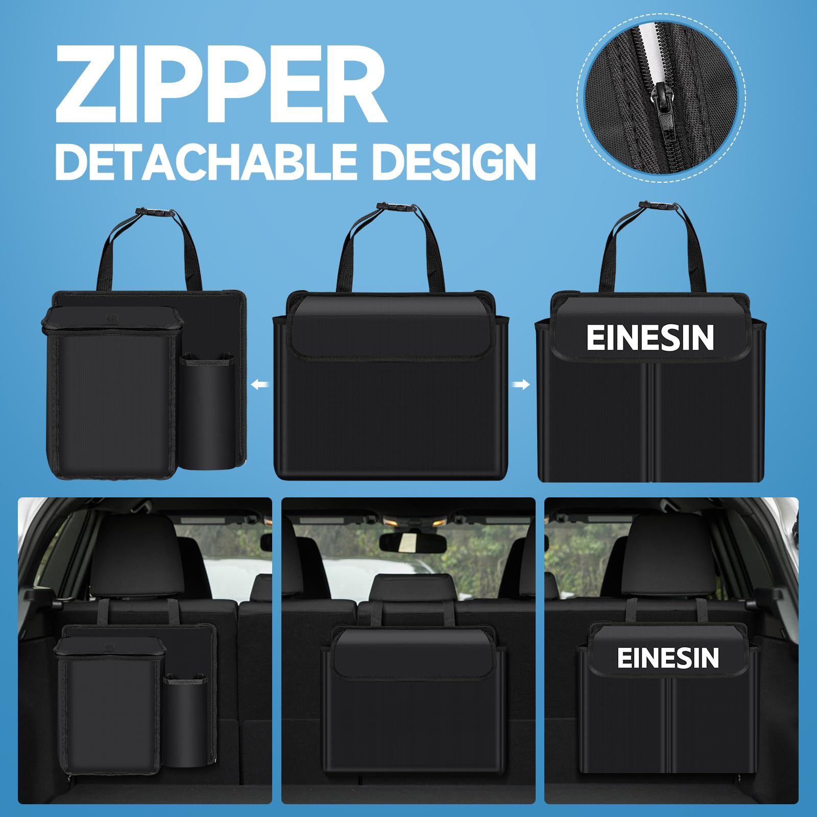 One in-car trunk organizer, car storage bag with Velcro trunk pockets foldable, removable storage modules with built-in cooler (black)