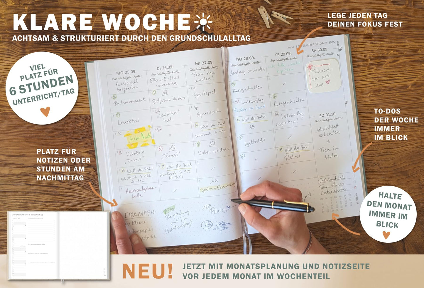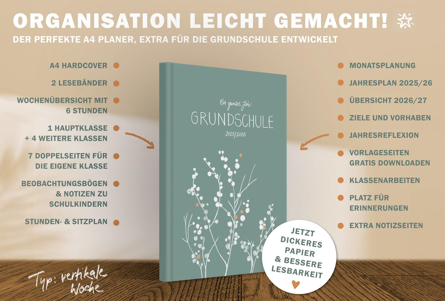 "Developed in collaboration with teachers specifically for elementary school! Our compact school planner will guide you confidently through the 2025/26 school year - in a clear and straightforward manner.