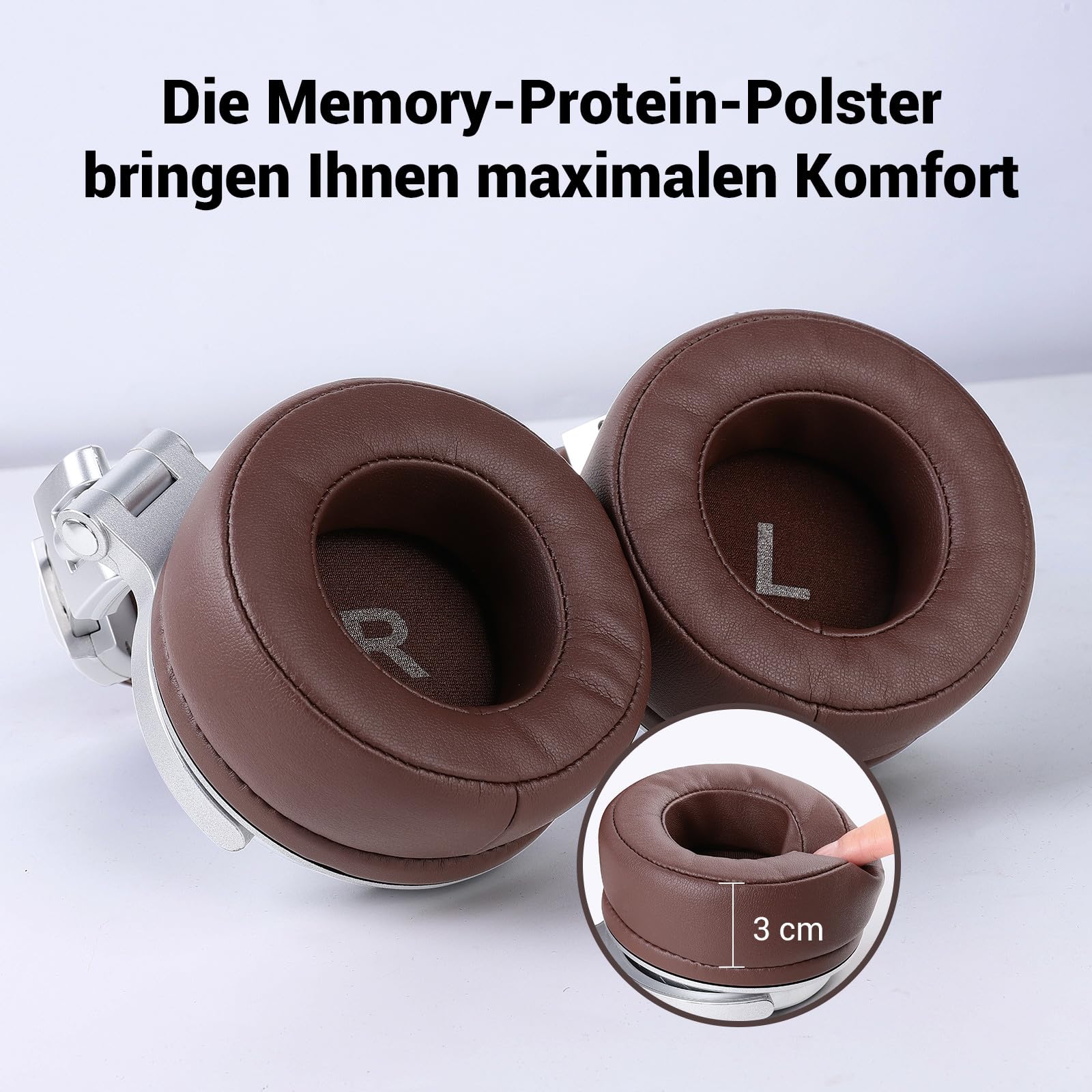 ["Excellent sound quality: The 50mm neodymium drivers provide stereo sound. Enjoy remarkable and powerful bass sound with the closed on-ear headphones.", "SUPER COMFORTABLE - The memory earpads made in Germany distribute pressure and heat build-up. Combined with the soft leather headband, it offers maximum comfort and excellent isolation.", "No adapter needed - comes with two detachable cables. A 3M stereo cable (6.3mm plug) easily reaches from the TV or stereo system to your sofa. A 3.5mm jack cable with microphone for laptop, smartphone, PS4, etc.", "Sharepport technology: You can connect as many of these headphones as you want without pairing, to share music or movies with friends or family.", "【Wide compatibility】Suitable for all devices with 3.5 or 6.35 audio jack, such as MP3 players, PS4, AMP, electric guitar, etc. Beautiful sound, sturdy construction, very comfortable to wear. This is the headphone you are looking for. [2 years warranty]"]
