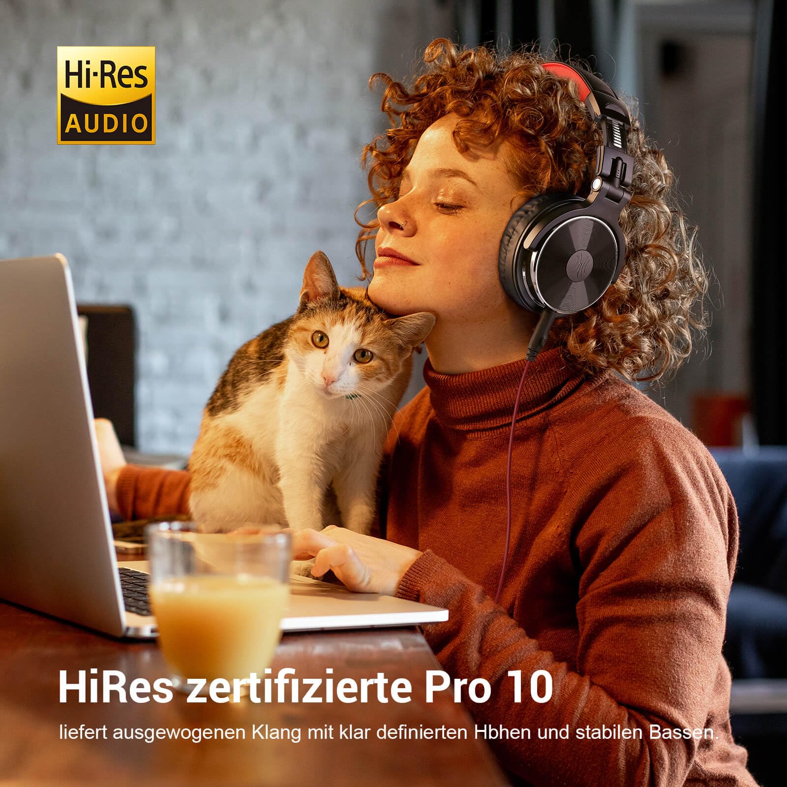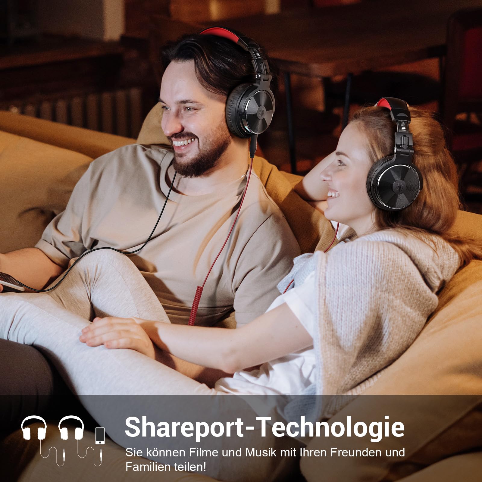 OneOdio over-ear headphones with cable, 50mm drivers, bass sound, 6.35 & 3.5mm jacks, share port, closed-back DJ headphones for studio, podcast, monitoring, phone, PC, MP3/4 (Pro-10 Red)