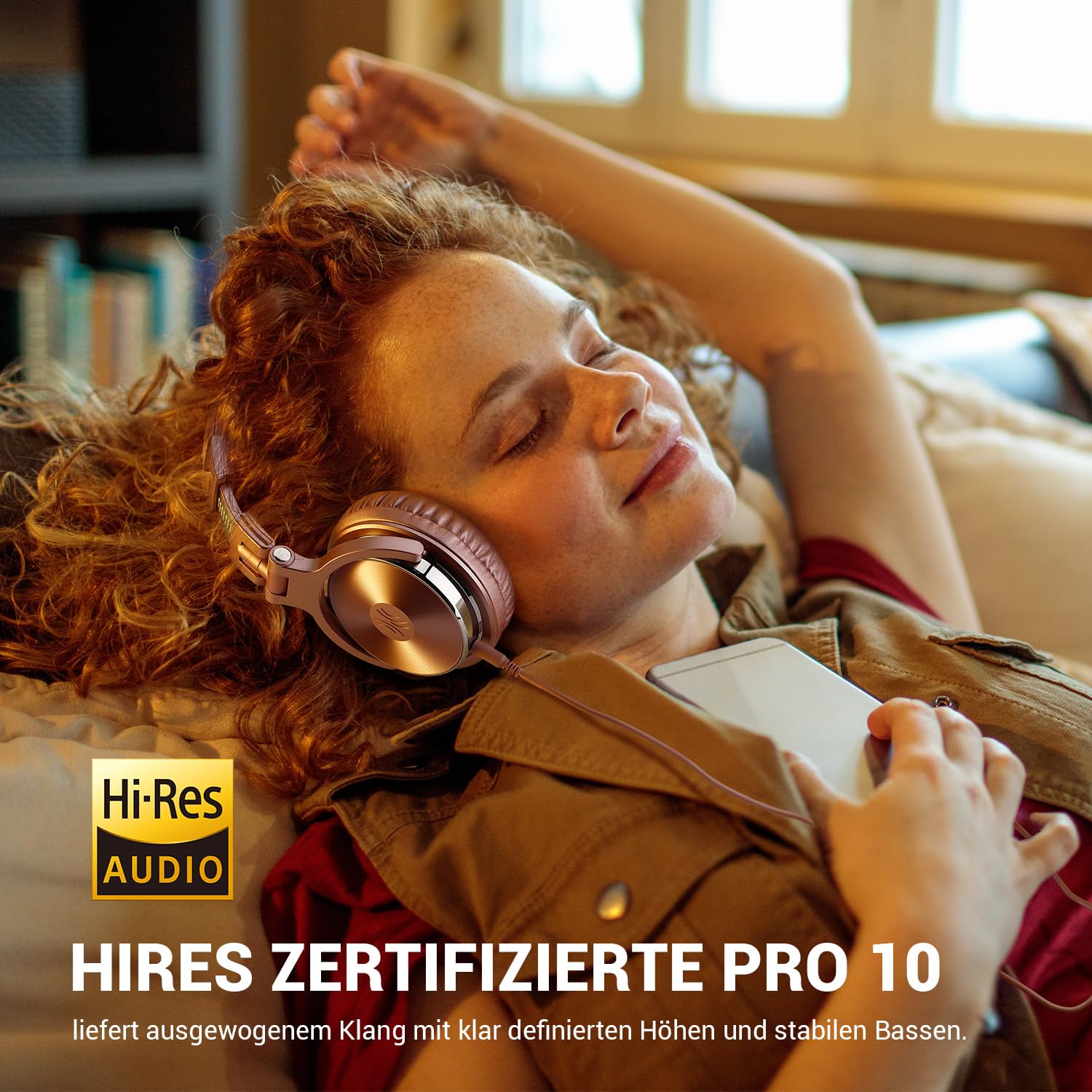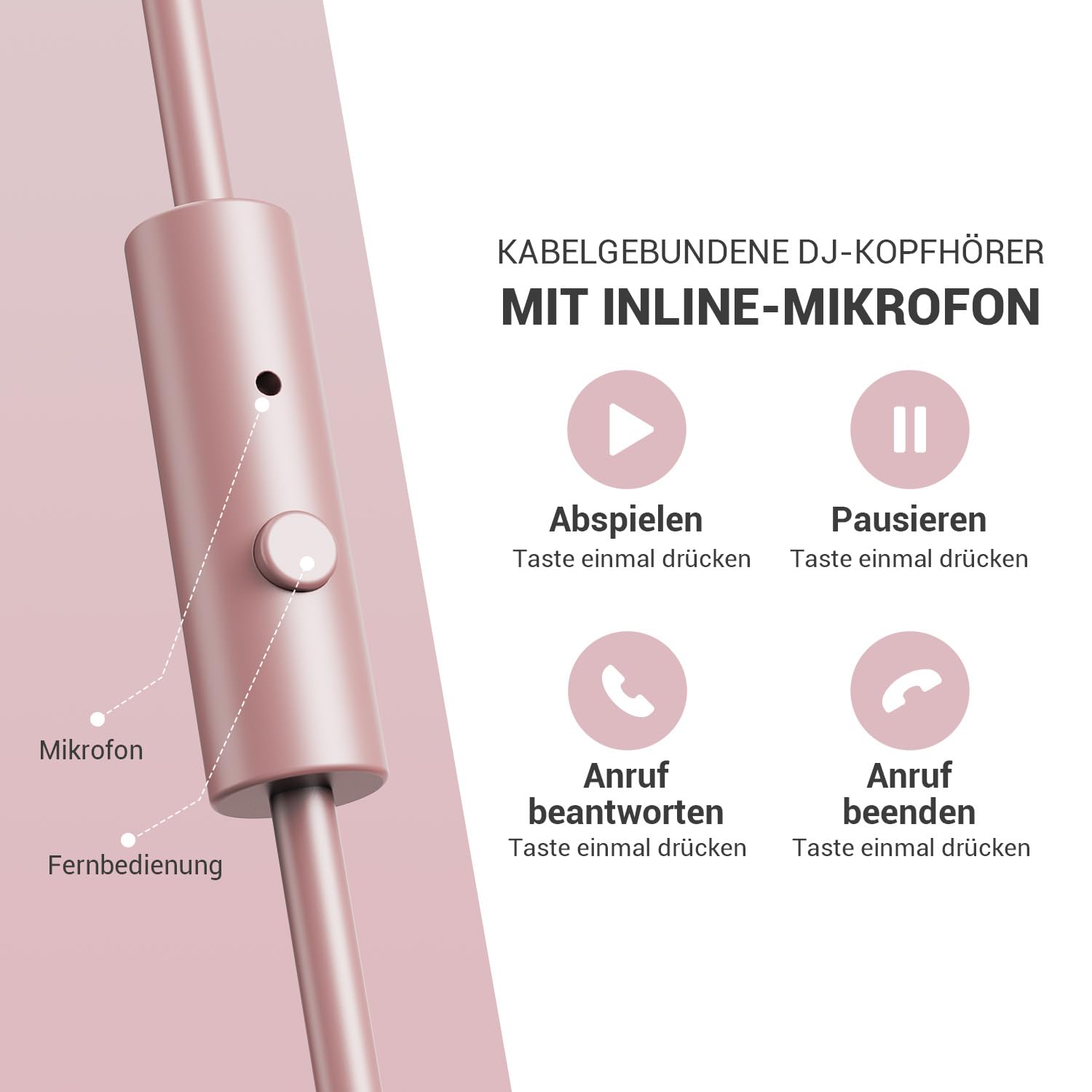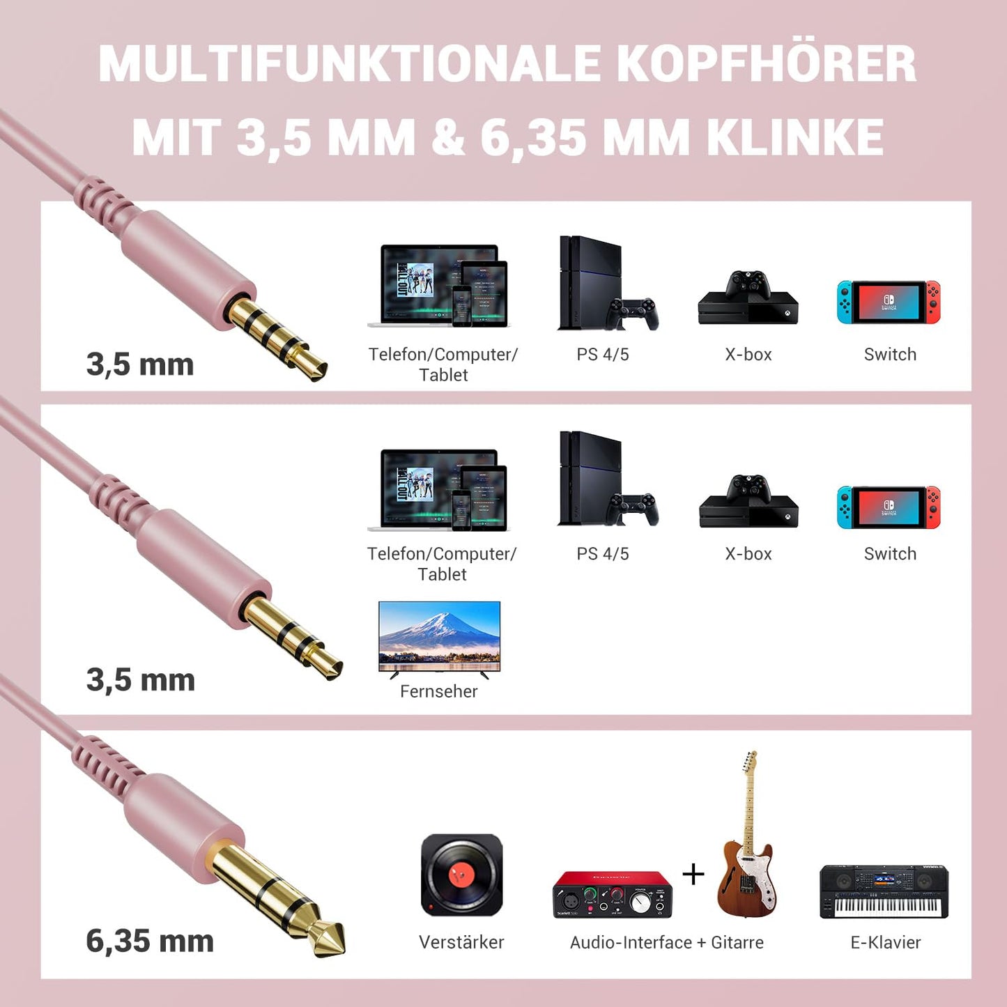 Oneodio Over Ear Headphones With Cable Closed Back Studio Headphones With Share Port Microphone Adapter-Free Professional Bass DJ Headphones for Podcasting, Recording, Monitoring PC Mobile TV Rose Gold