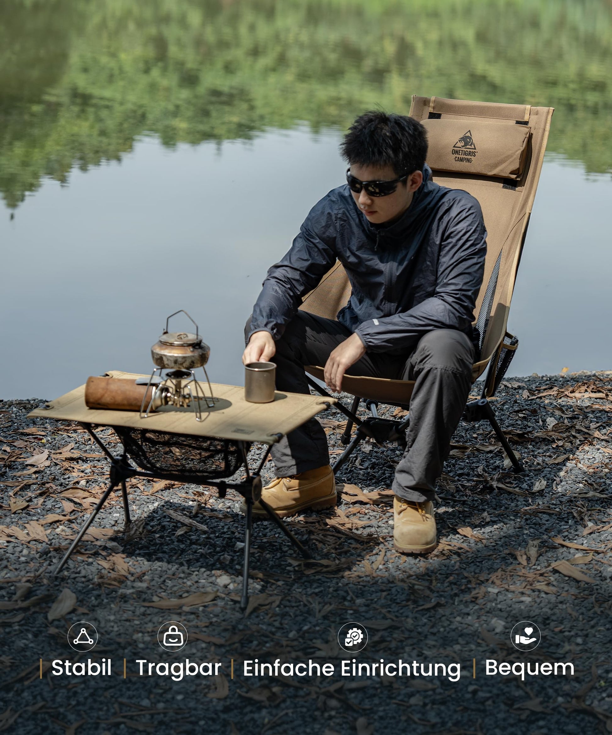 ["170 kg Weight Capacity: Outdoor chair features the most solid triangular structure with a central connecting rod forming a base of 2 individual triangles, and the frame made of a 70A6 aluminum alloy weighs only 1.96 kg and can support a weight of up to 170 kg","High Back and Neck Support Cushions: The comfortable seats and removable headrests provide support and relaxation, ensuring an optimal seating experience and a wonderful feeling of envelopment and back support. This foldable camping chair is a must-have for anyone looking to get cozy outdoors","Convenient Storage: The folding chair has 2 side pockets for storing phones, snacks, and other small items. Ideal for camping, hiking, fishing, BBQ parties, gardening, indoor use, and more","Easy to Assemble & Carry: the new central pole design makes assembly and disassembly extremely simple. Folded dimensions 43 × 17 × 17 cm. The collapsible frame is also very lightweight and easy to carry (includes carrying bag)","Wide Range of Uses: The size of the camping chair is 60 × 46 × 98 cm. Portable camping chair is made of dirt/water/scratch-resistant 600D polyester fabric to ensure the comfort of this folding chair. Breathable mesh material on the side keeps you feeling fresh and comfortable in the summer. Ideal for camping, hiking, fishing, BBQ parties, gardening, indoor use, and more"]