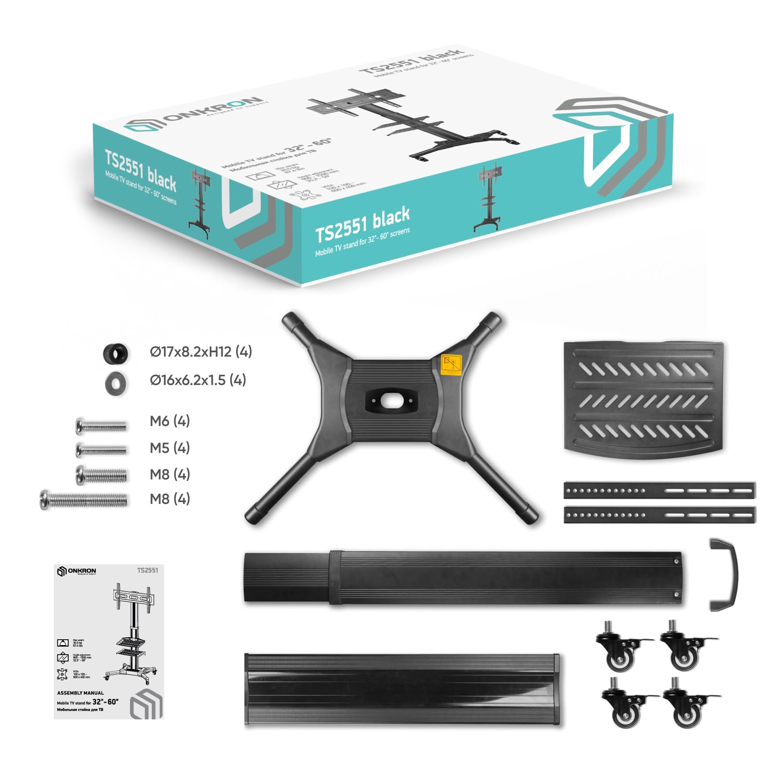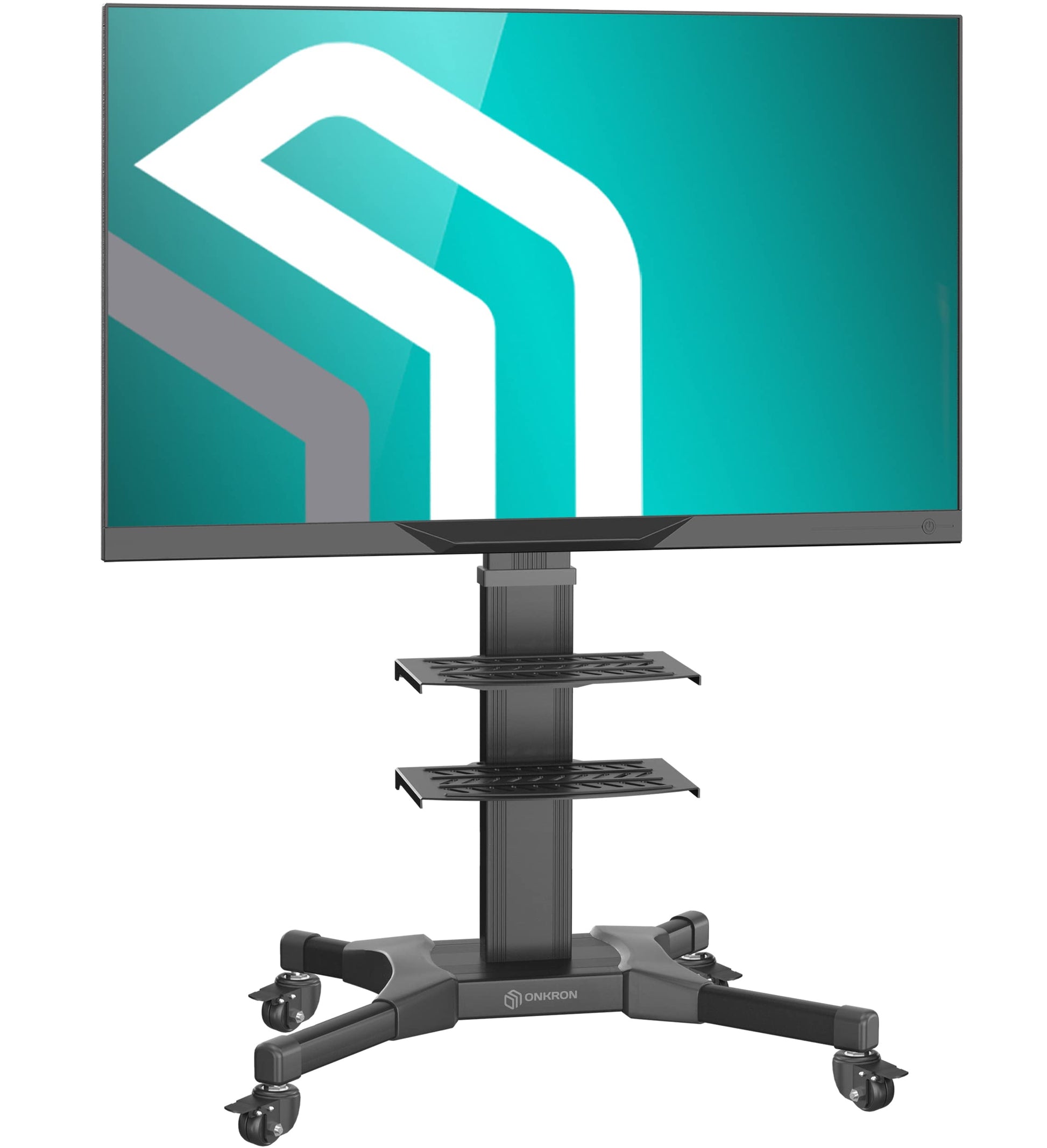 ONKRON Mobile TV Stand TV Stand Foot TV Cart Stand 32-55 inch height adjustable on wheels for flat and curved TVs monitors floor stand with bracket VESA TS2551 Black