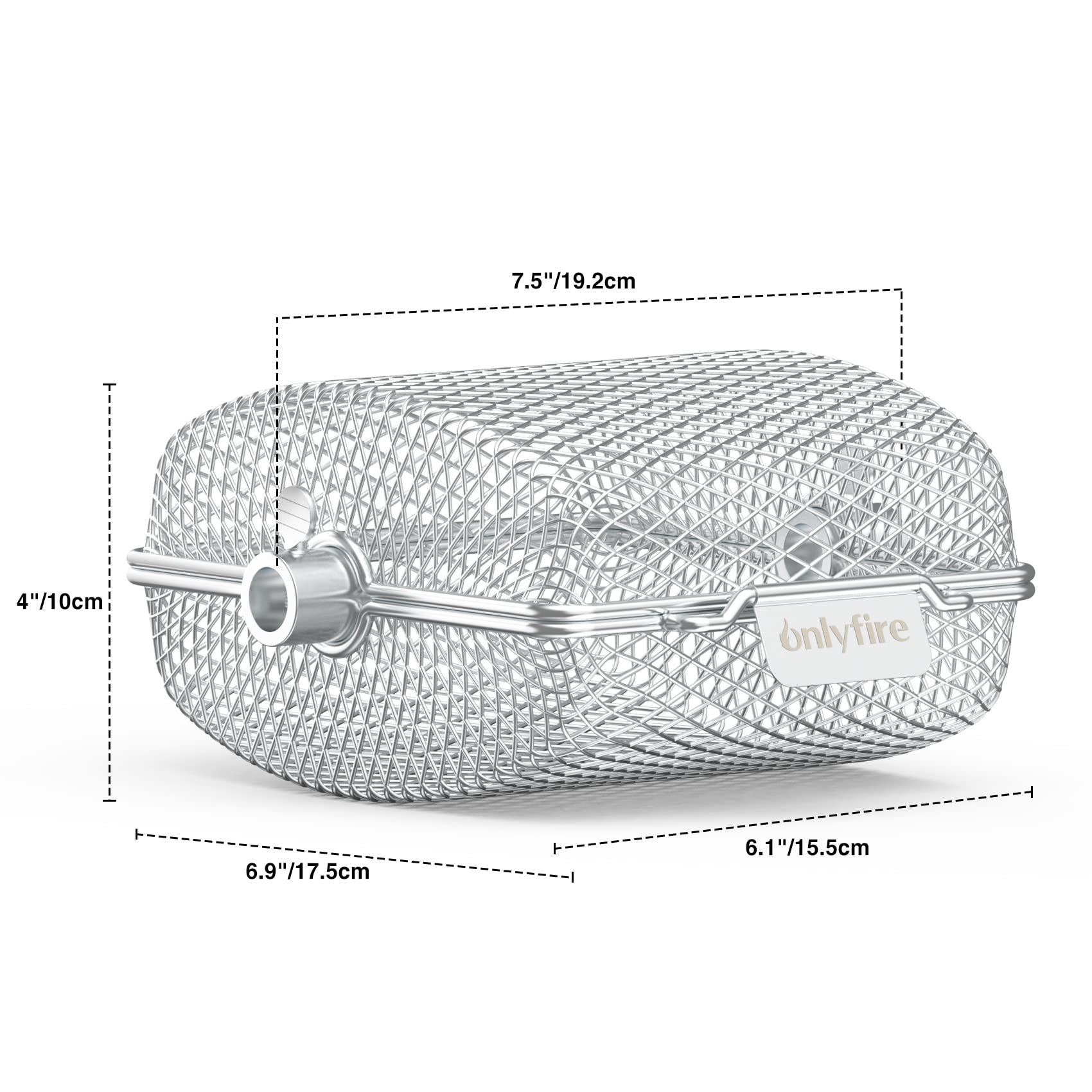 Onlyfire Universal Stainless Steel Grill Basket for Rotisserie, Rotisserie Grill Rack for Skewer, Skewer Basket for Potato Wedges and Vegetable Cubes, 19.2 x 17.5 x 10 cm, 3 pieces.