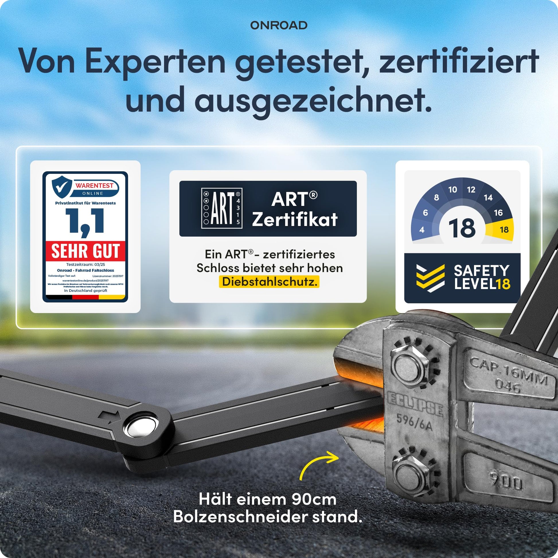 ONROAD foldable bike lock Onlock Ultra 120cm theft-proof - High security bike lock - Robust & heavy-duty foldable bike lock with bracket - Ideal for E-Bikes.