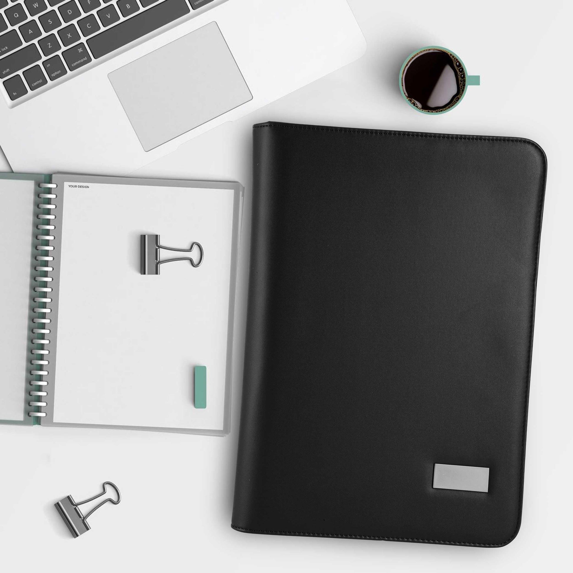 ["Including A4 pad", "Size: 10.6 x 14.2 x 1.8 inches", "Faux leather | Black"]
