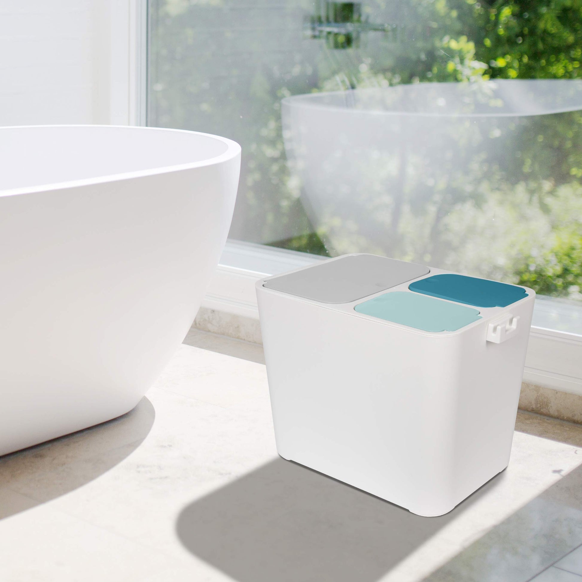 ONVAYA® Waste Separation System Tom | Waste separation with multiple compartments | Trash can in cream-white | Waste bin for kitchen & bathroom (36 liters, Gray-Mint-Petrol)