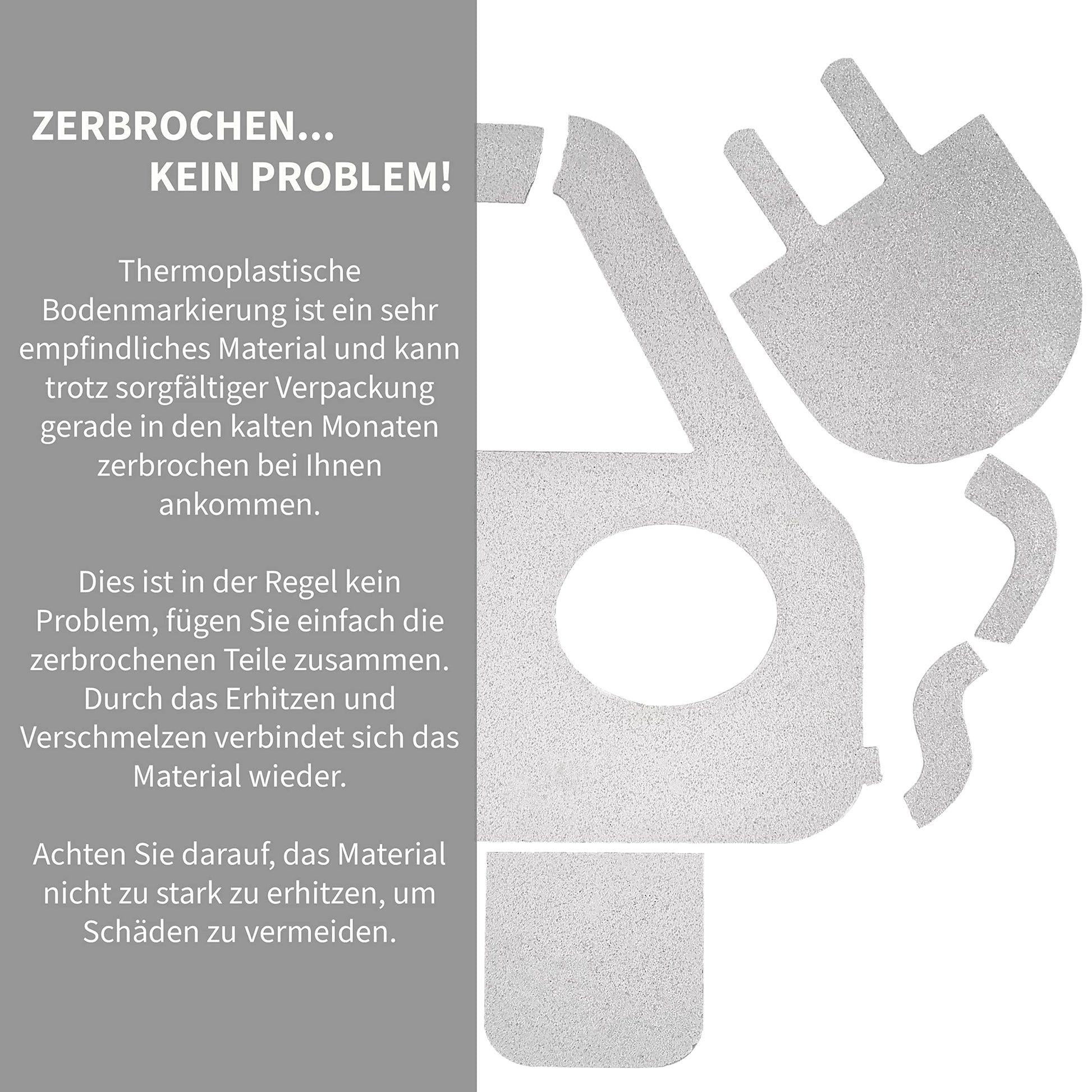 ["High-quality & durable road marking prefabricated for easy and quick installation - Environmentally friendly & BASt-certified - The heat indicators integrated in the material fuse when the correct temperature is reached",